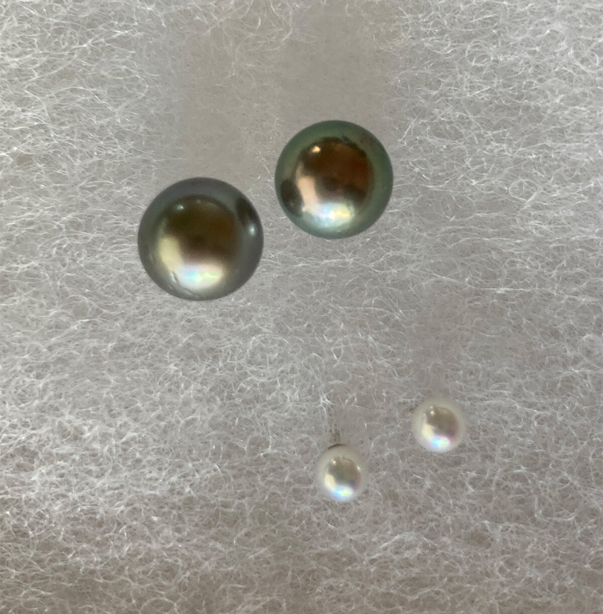 上がフレンチポリネシアの南にあるガンビエ諸島で採れた黒真珠。いちばん小さな7-8mmサイズを選んだのだけど、下の覚田真珠の3.5mmベビーパールのなんて愛らしいことよ。伊勢神宮の外宮そばに本社があります。https://kakudapearl.jp/