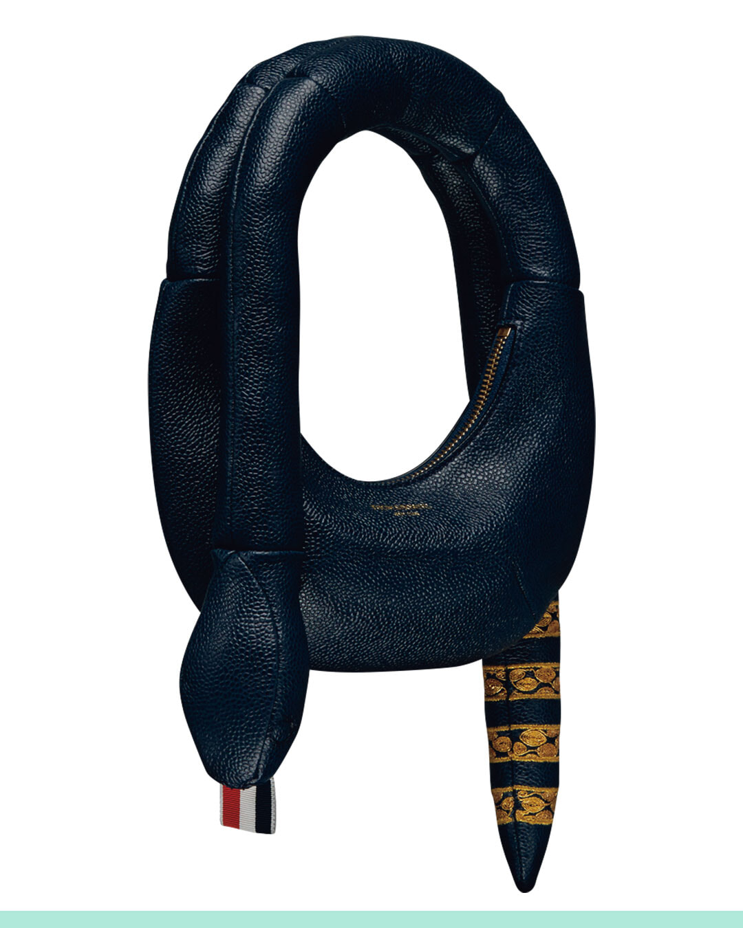 今年の干支であるヘビがなんとバッグに。おなじみ4バーの代わりに施された金色のウロコ風刺繍や、舌のように見えるグログランループタブなど、シグネチャーもユーモアたっぷりに投入。
