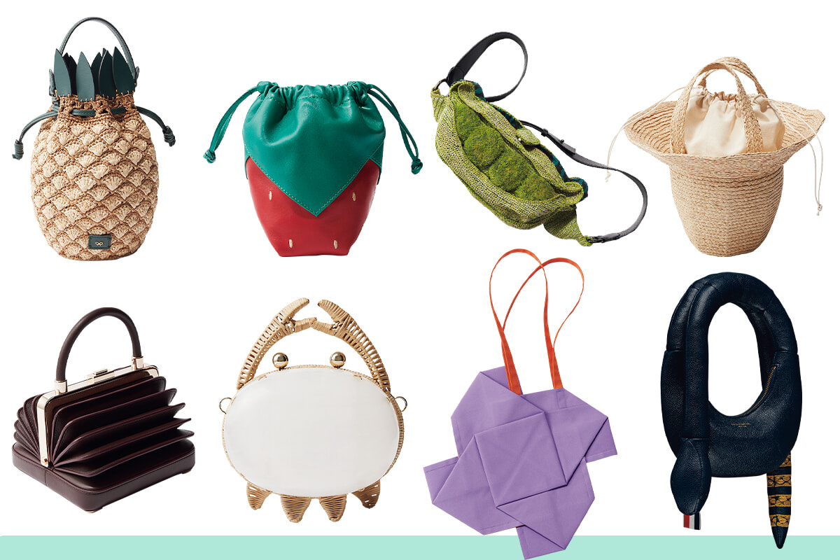 この春夏、バッグは”ユニークなフォルム”がトレンドの本命。フルーツや動物、幾何学的なデザインまで、定番を超えた遊び心あふれるシルエットが勢揃い。
