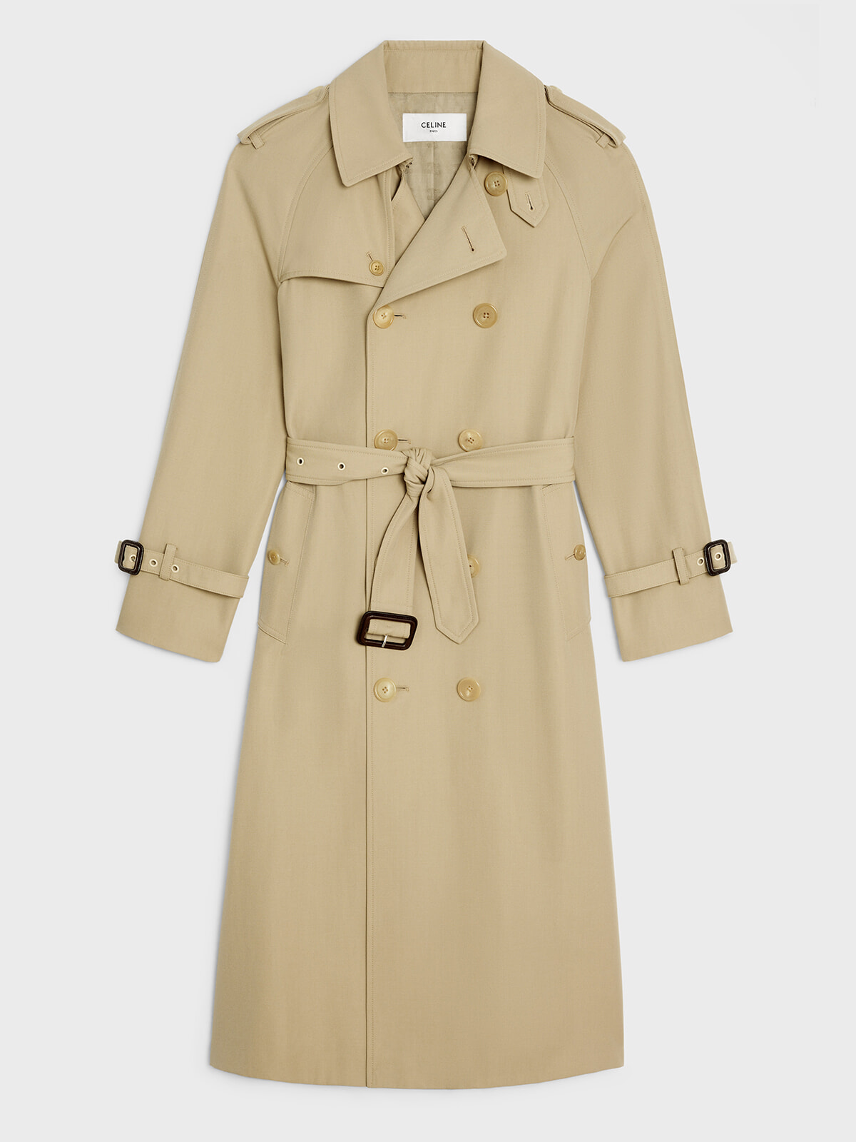 セリーヌのエッセンシャルアイテムのひとつ「ウィルターン」トレンチコート。しなやかでハリのあるコットンギャバジンを使用し、軍用として生まれたアウターの要素をしっかりとおさえたオーセンティックな表情が魅力。ブランドがこれまでに提案してきた従来のモデルに比べ、女性の体を美しく見せるすっきりとした細身のシルエットに仕立てられている。過度に主張しない同系色のフロントボタンや無駄のないカッティングも相まって、スタイリングやシーンを問わず、クリーンに着こなせる。