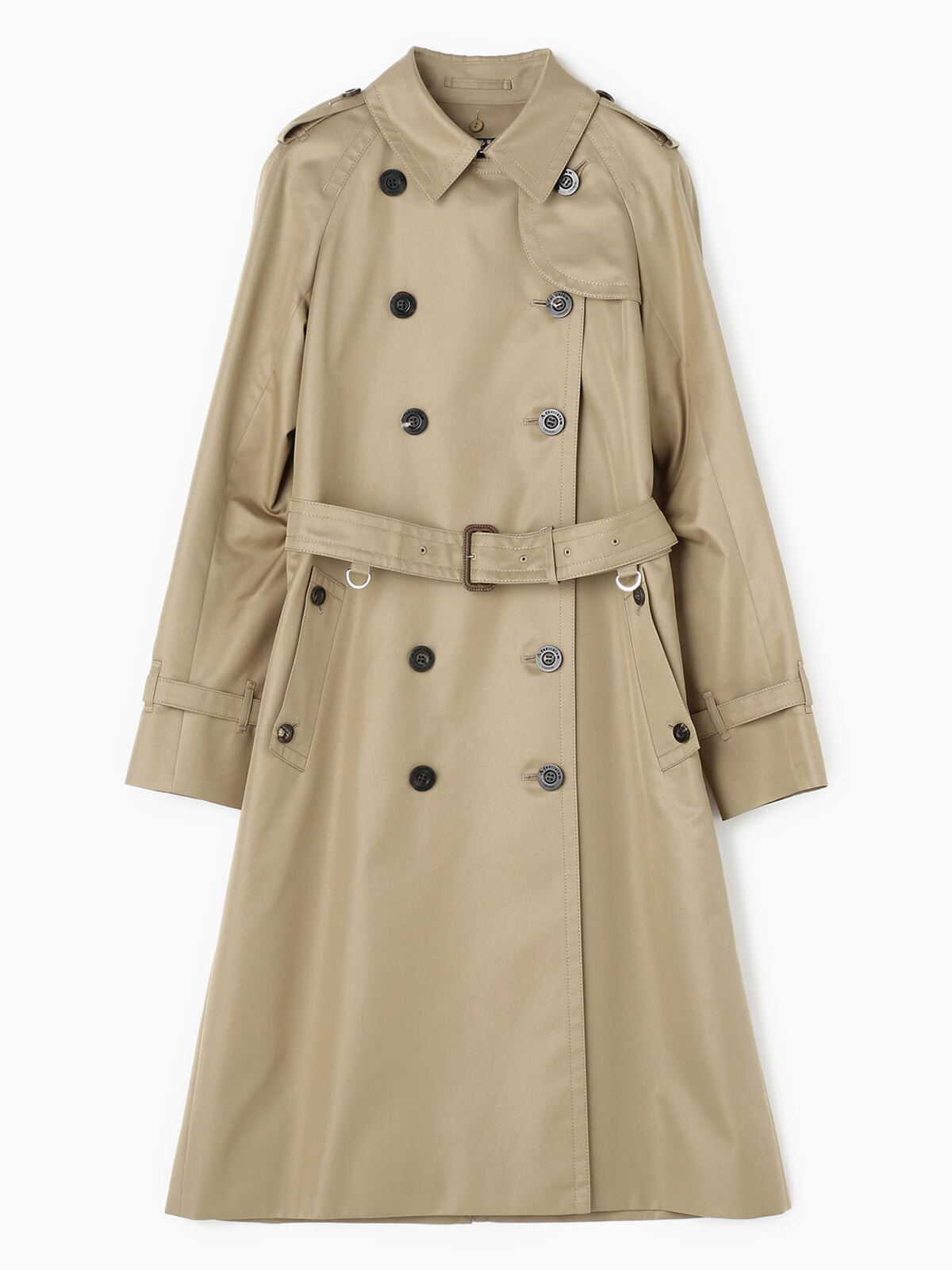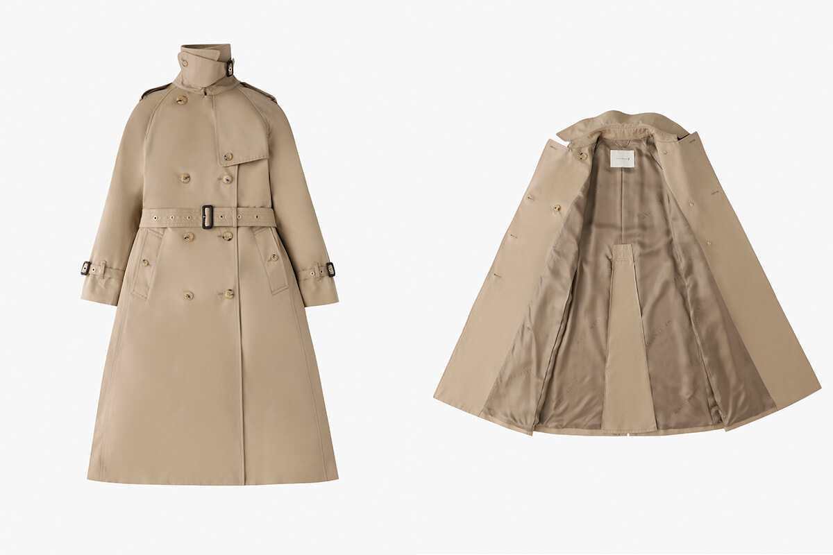 創業者のチャールズ・マッキントッシュが19世紀に開発した、防水加工を施したゴム引き生地の製法をトレンチコートにも応用。細番手のスーピマコットンを織り上げたギャバジンは撥水性が高く、レインコートの役目も果たしてくれるタフな機能性と万能なデザインがポイント。ウエストから裾にかけてゆるやかなフレアラインを描く上品なシルエット、歩くたびに流れるようなドレープでエレガンスも追求。パーティやイベントなど、ドレスアップスタイルの羽織りにも。