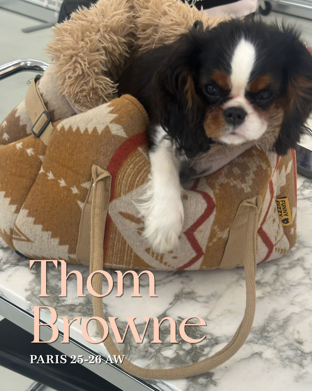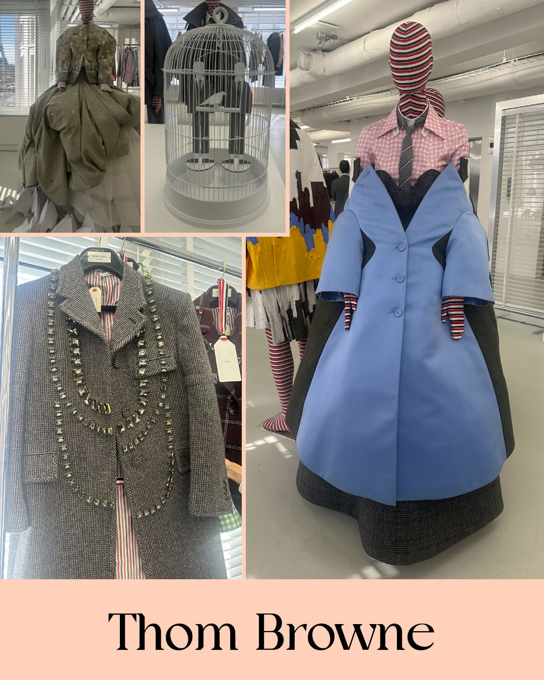 トム ブラウンのショールームにおじゃましました。刺繍やスワロフスキーのクリスタルをアタッチしたウイットに富みつつリュクスなディテール。布をたっぷりとったクチュール風のルック。