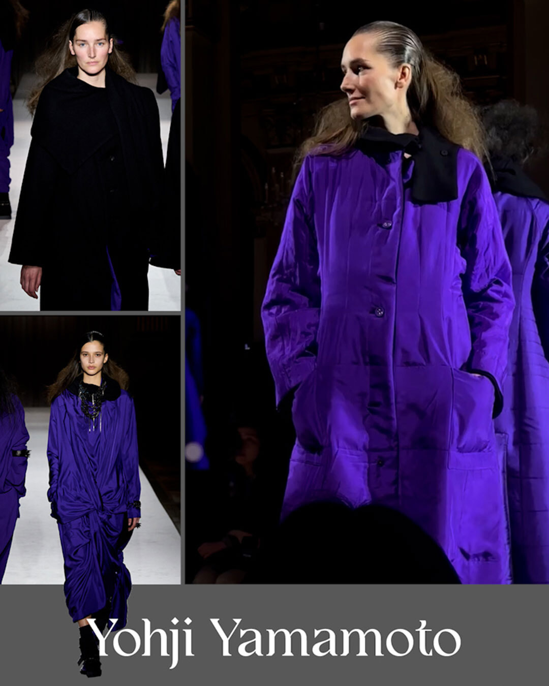 今日のラストはヨウジヤマモト。歌謡曲演出祭りは前回から続いていますが、今回はボーカルも! また、ラストにおいて脱ぐこと着ること、合わせること、というファッションの変化と進化をメッセージするようなシーンがあって、ユニークでした。