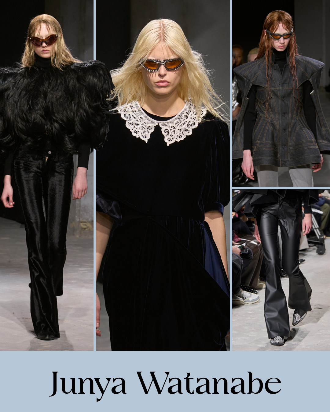 ジュンヤ ワタナベの黒、レザー、デニムは、毎回とてもクールでとんがっているのだけれど、間近で見た時に、パンツのシルエットの美しさにハッとする。足が長くスレンダー見えるし、シャープ。