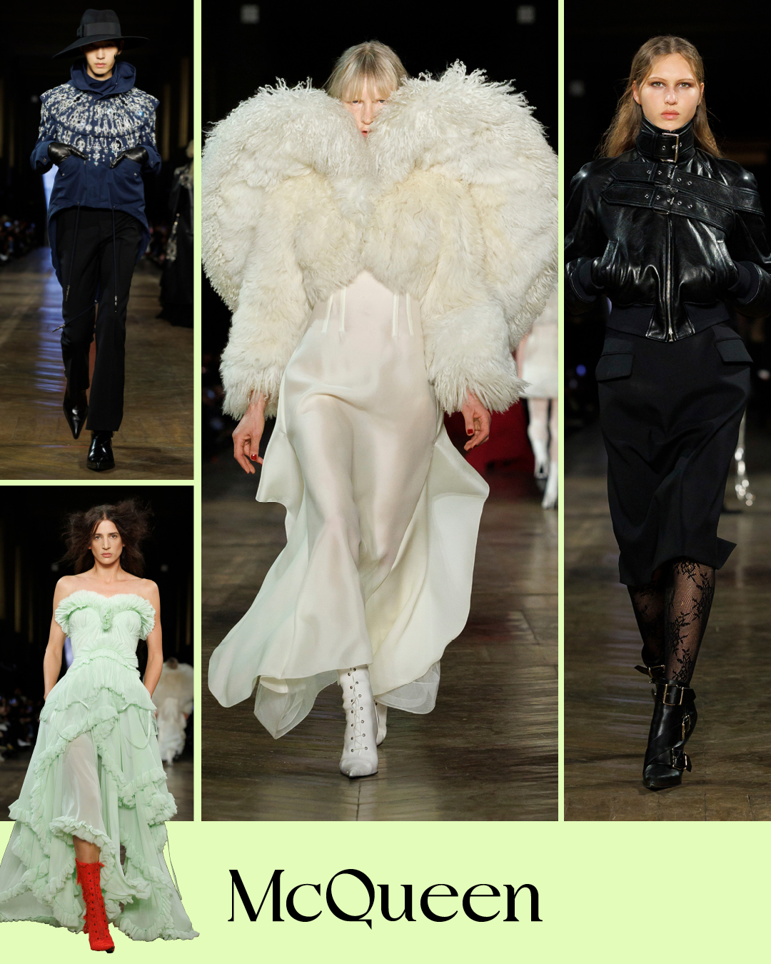 市内の植物園で行われたマックイーンが本日のラスト。地下鉄でのんびり移動して、見知らぬ通りを歩くと旅気分も。植物園の一角にある建物の長い回廊で行われたショーでは貴族的ムードあふれるルックが多数。ボリュームデコレーションで♡を描いたユニークなドレスなどもあるが、ナポレオン風のジャケットなどハンサムなルックも多数。フェミニニティとマニッシュが交互に展開されるような「着たい美しい服」の連続でした。