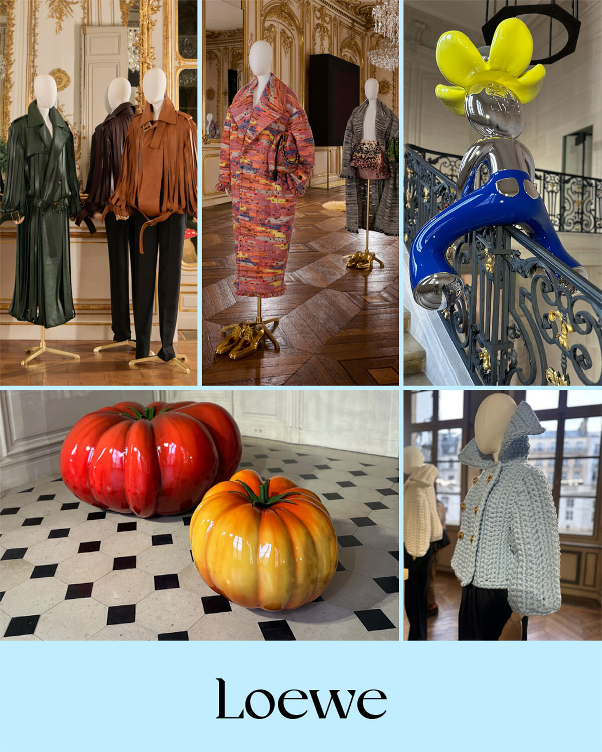 3月10日時点では発表されていませんでしたが、これを書いている3月下旬現在、ジョナサン・アンダーソンがロエベを去り、新デザイナーとしてプロエンザ スクーラーのデュオがロエベを引き継ぐことが公表されました。毎回、市内中心を離れて城でショーを行っていたジョナサンのロエベが今回は展示会形式。動揺しながら10日、ジャーナリストたちは展示を見に訪れていたのだと思います、私もそうでした。ただ、展示は素晴らしかった!