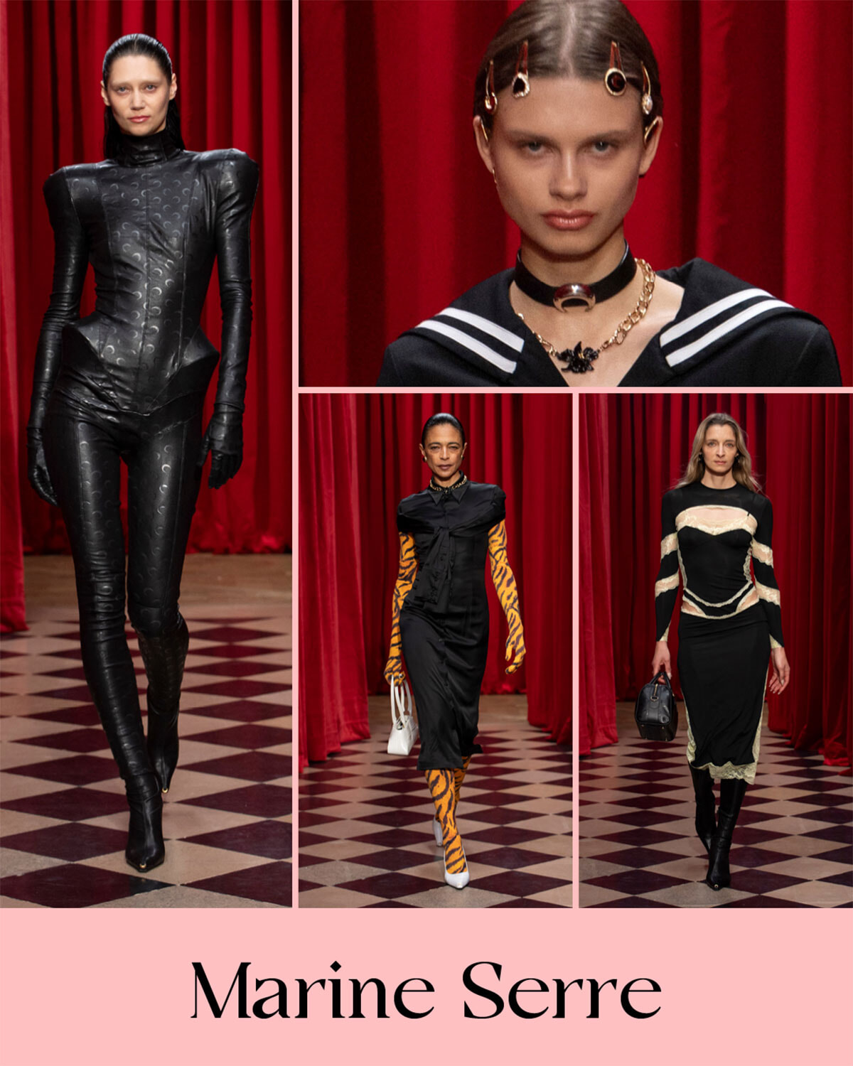 愛らしくフェミニンな印象のマリーン セルですが、今季は少しハードでロックな要素もプラス。でもヘアアクセサリーなどもキュートで、セーラーカラーやランジェリーライクなレース仕様のドレスなどはむしろウエアラブルなのではないでしょうか。