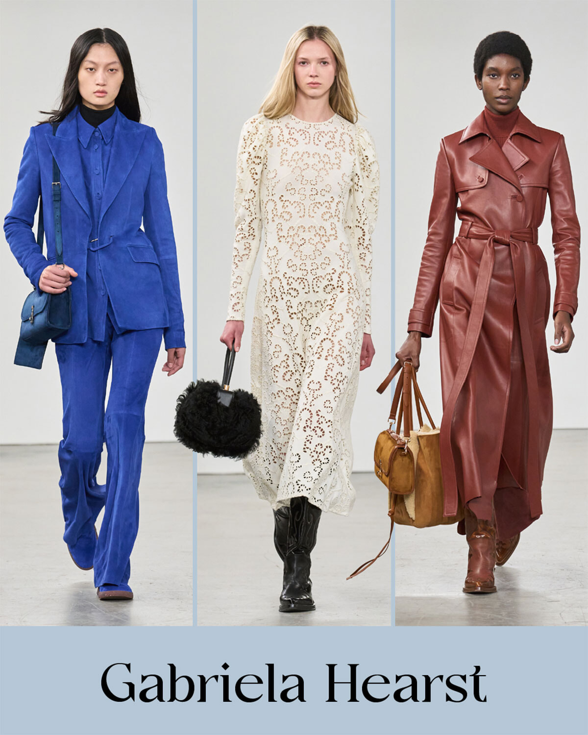 ガブリエラ ハーストはパレ・ド・トーキョーにてショーを行い、始まる前にはシャンパンをゲストにふるまってくれた。センシュアリティと大地の強さやマニッシュなムードが絶妙なバランスを保って表現されるブランド。ブルーの三つ揃えのルックは、日本の女優が纏っても似合いそう。レザーはエキゾティックタイプまで、強い! 迫力のあるコレクションでした。