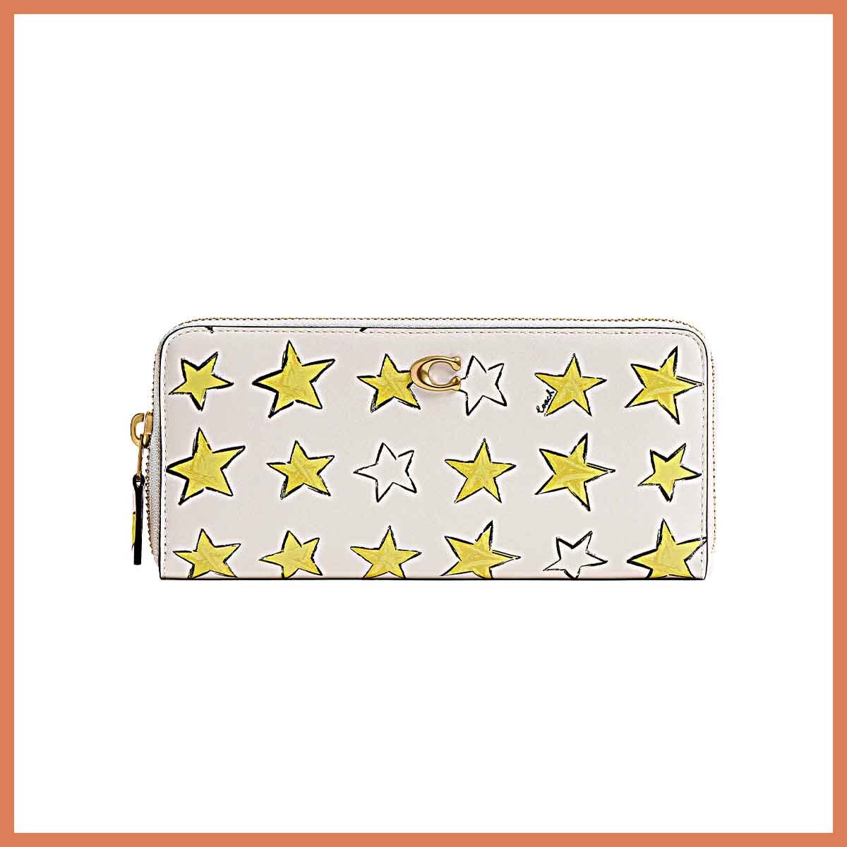 ランダムに描かれたスターのグラフィックにパワーをもらえるウォレット。バッグの中に入れて毎日持ち運べば運が巡ってきてくれそう。