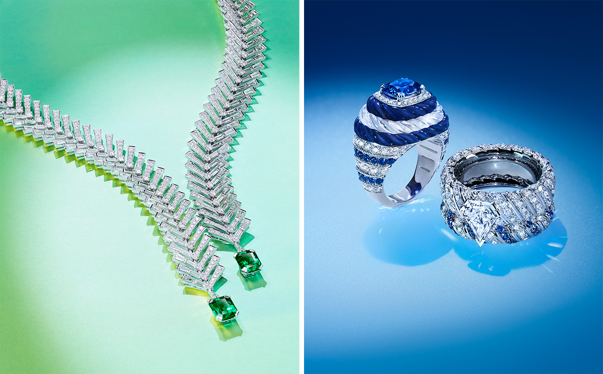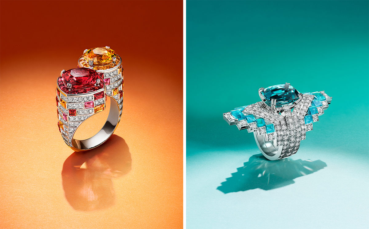 ブエノスアイレスの街並み、椰子の木が茂る庭園、カーニバルに賑わう街のムードや、マル・デル・プラタの海を着想源としたカラフルでエネルギッシュなジュエリーを前に、ヴァレリー・サミュエル自らがムードボードを片手にコレクションについて説明。3つでひとつになる複雑な構成のリングや、ブレスレットやネックレスとしてアレンジ可能なアイテムを、愛情を込めて披露してくれた。