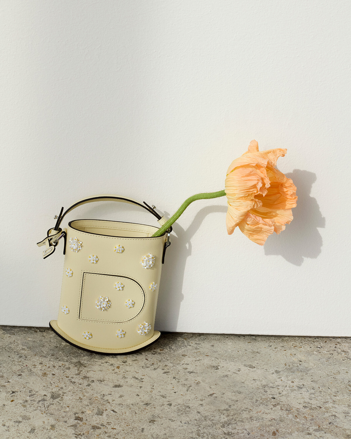 直線を避け、詩的なモチーフを探索する「ランゲージ オブ ネイチャー」コレクションは、繊細で大胆なデザインへのアプローチを明らかにしながら、ロマンティックで自信に満ちた女性らしさを讃える。このコレクションでは、チューリップ、デイジー、アイリスなどのアール・ヌーヴォーを象徴する花々が存在感を放ち、コレクション全体に田園的な印象をもたらす。「ブリヨン」のハンドルにはレザーのチューリップが巻きつき、「タンペート」にはスパンコールとビーズの刺繍で作られたデイジーがあしらわれ、そのほかホワイトカラーのアイリスが繊細なミントカラーの「パン ミニ バケット」など、どれもデルヴォーの熟練した技術が詰まっている。