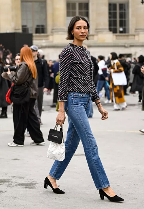 2025年3月、パリ・グランパレで行われたシャネルのショーでは、アメリカ人モデルでクリエイターのタイリン・グエンが、シガレットジーンズにツイードジャケットと黒のパンプスを合わせて登場。その姿は新しい”クラシック”の提案のようでもあった。ランウェイでも、バリーやブランドンマックスウェルがやや広めのラインでシガレットジーンズを再解釈。ディーゼルでは、ロックな雰囲気のグレーデニムとして登場するなど、ブランドごとのスタイルが光った。