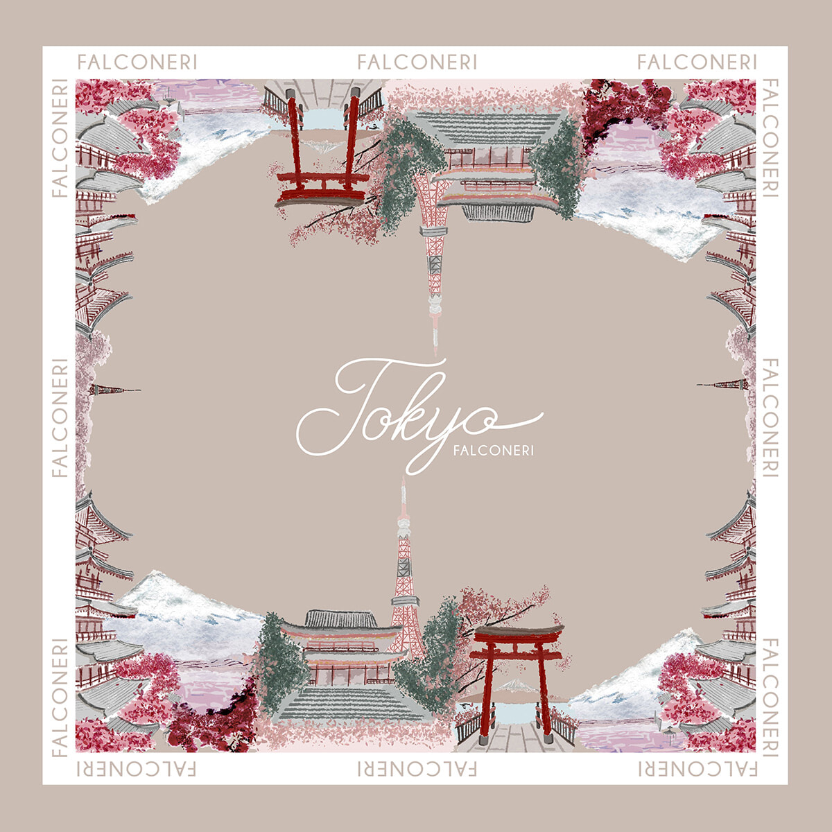 この「旅するスカーフ」は、ファルコネーリの拠点となるヴェローナ、そしてミラノ、ローマ、フィレンツェ、ヴェネツィアといったイタリアの主要都市をはじめ、パリ、ニューヨーク、マドリード、イスタンブールなど世界の名だたる都市で展開。東京版はシックなベージュ色をベースに東京タワーや日本の歴史的な建造物、象徴的な富士山をデザインに取り入れている。上質なシルクのスカーフは、ファッションのアクセントアイテムに最適かつ使い勝手も抜群なので、自分用にはもちろん、母の日のギフトにも喜ばれること間違いなし。