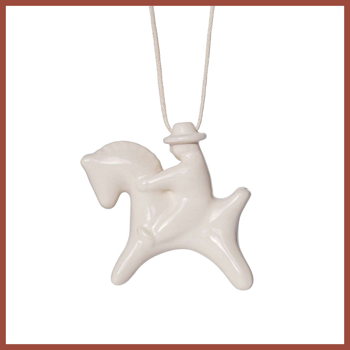 ウクライナの伝統的な笛のおもちゃから着想を得たアクセサリー。陶磁器で作られており、実際に奏でることもできるユニークなアイテム。