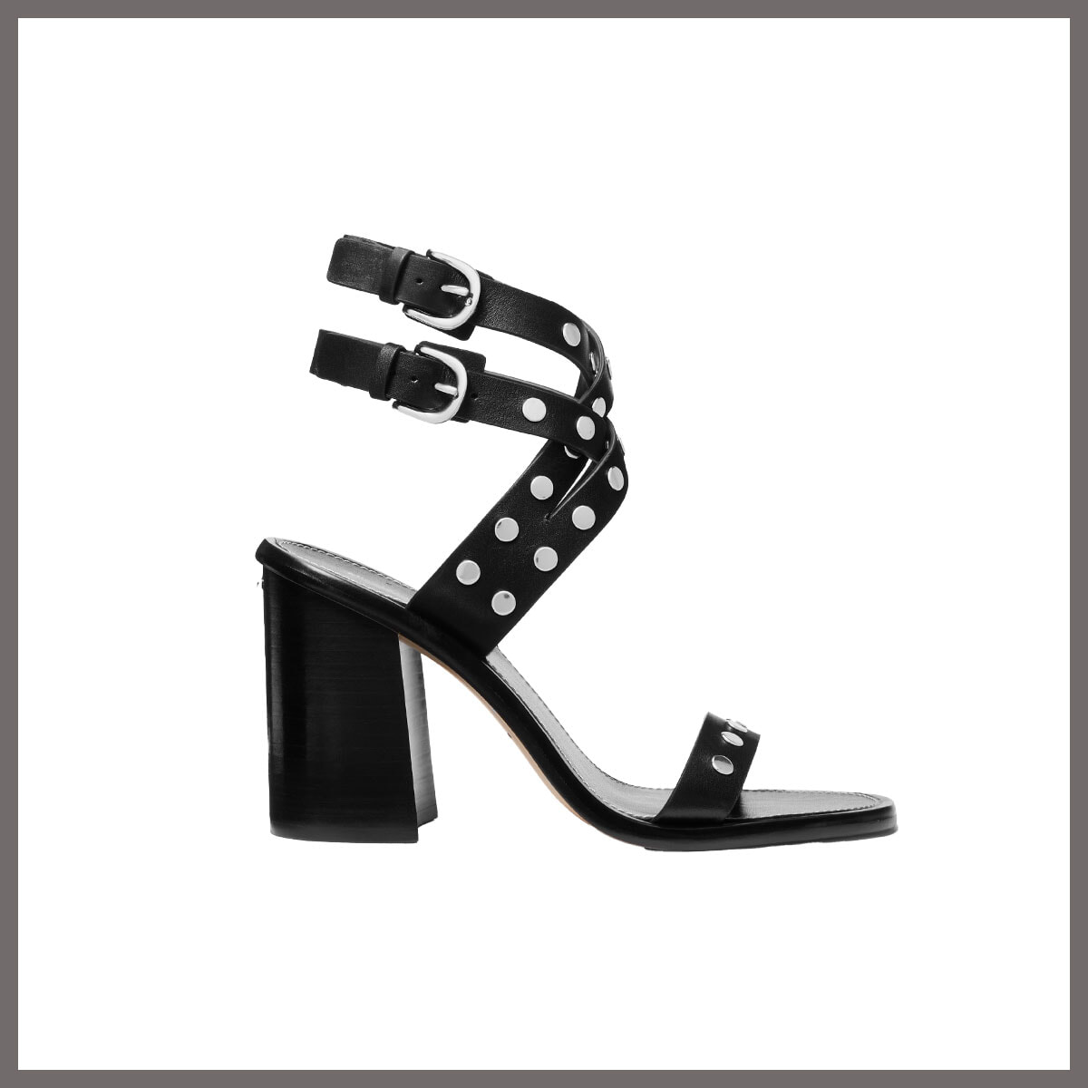 光沢のあるスタッズでタフネスなモード感を演出。コーディネートの引き締めに一役買う、重厚感のあるサンダル。