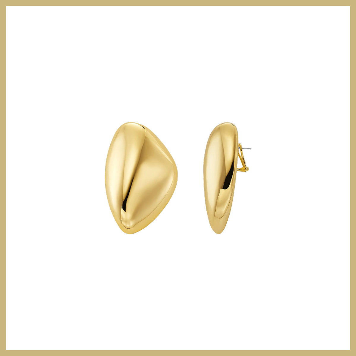 プレシャスなメタルコーティングを施し、曲線を活かしたミニマルなデザイン。周囲を圧倒するビッグなピアスでエッジの効いた着こなしを。