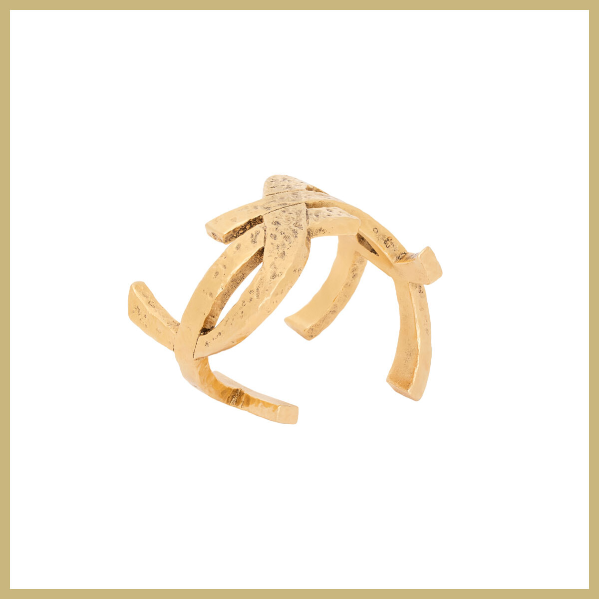 歴史ある「YSL」のカサンドラロゴが手元に寄り添うデザイン。身に着けるたびに愛着が湧く、クラフト感のあるバングル。