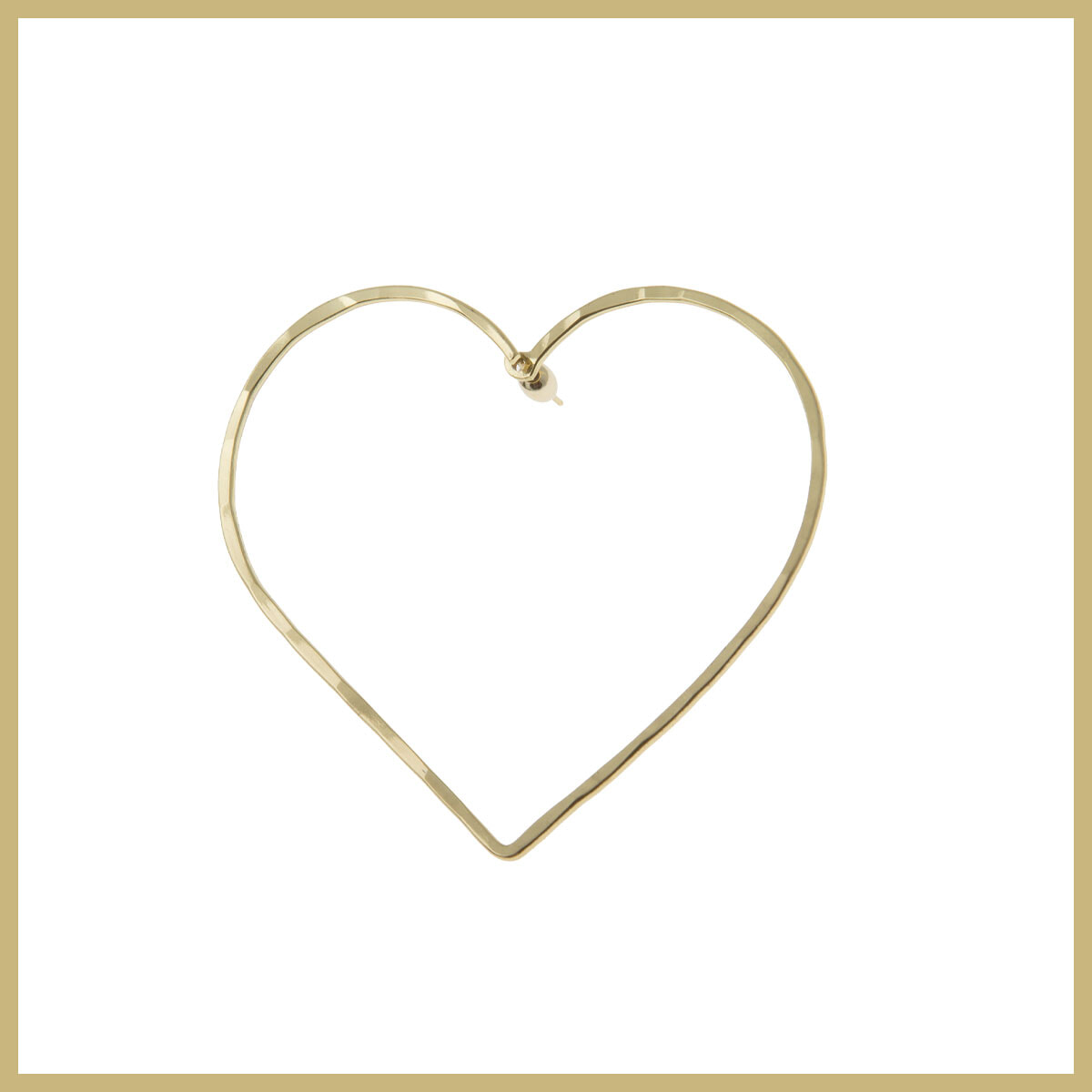 心躍る大きなハートのシングルピアスで印象的な横顔を演出。華奢かつシンプルなモチーフなので、マニッシュな装いとも好相性。