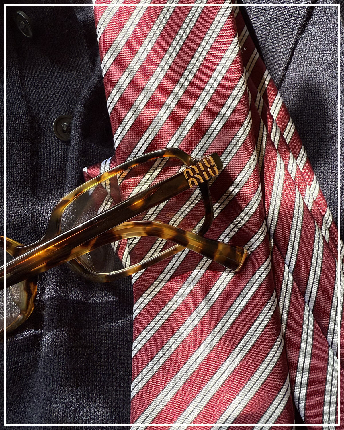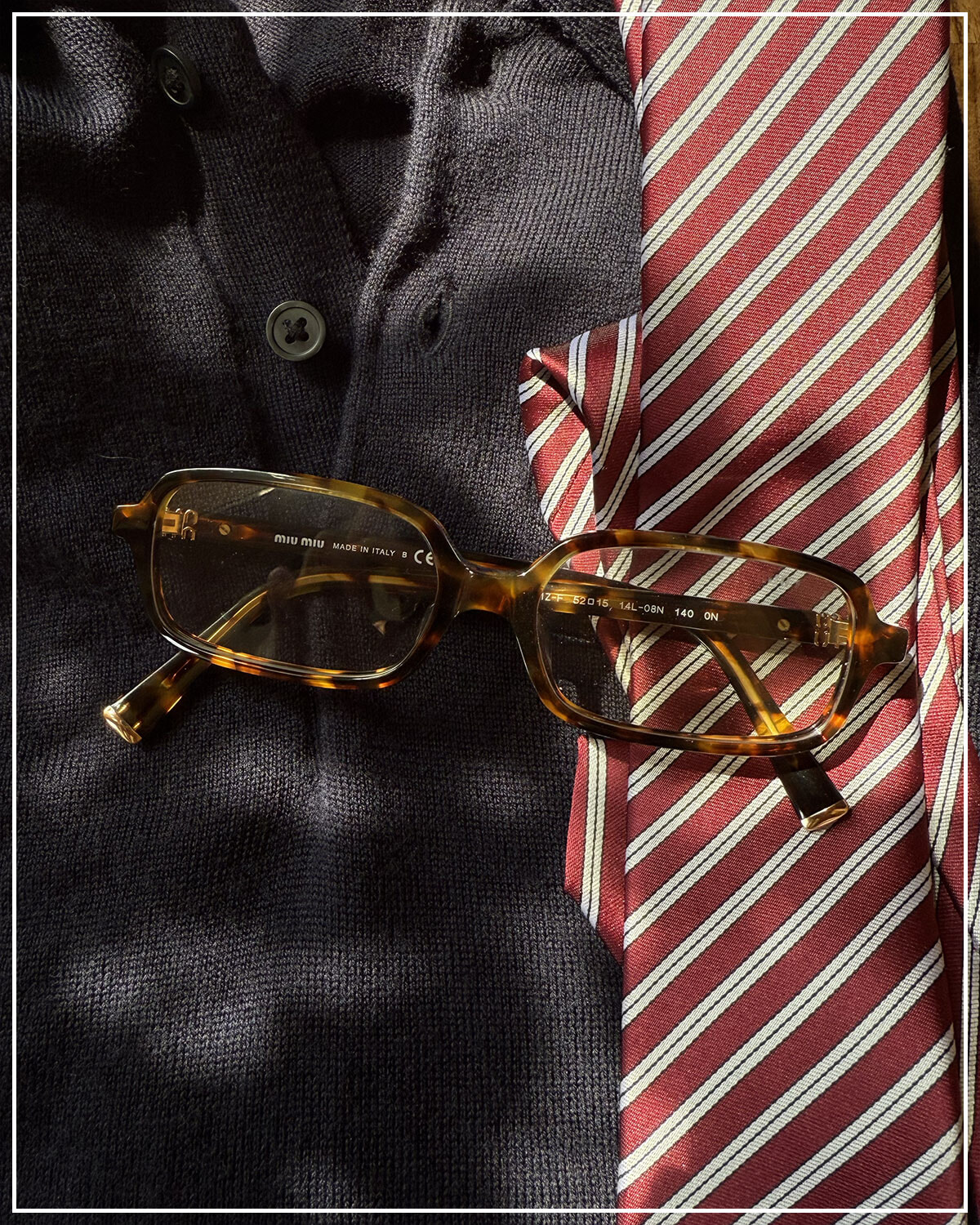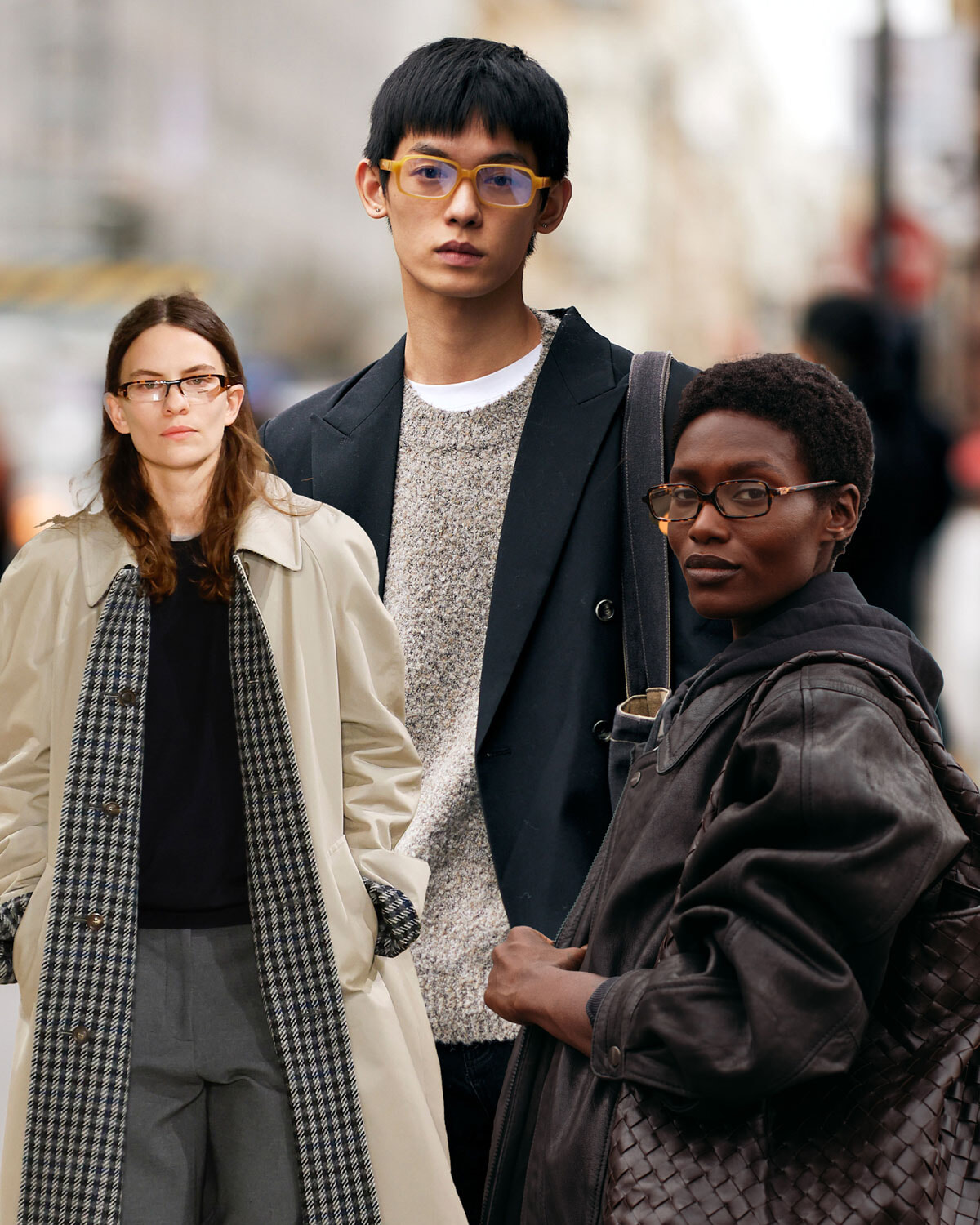 それにしてもアイウエアの世界って面白い! というのも、普段のスタイルにプラスワンするだけで、また違った雰囲気にしてくれるのです。フレームの形もサイズもさまざまで、黒縁やべっこう、金属製など選び放題なのも面白い。トレンドが後押ししているのか、SNSや街中でもたくさんの人たちが楽しんでいて取り入れやすい。