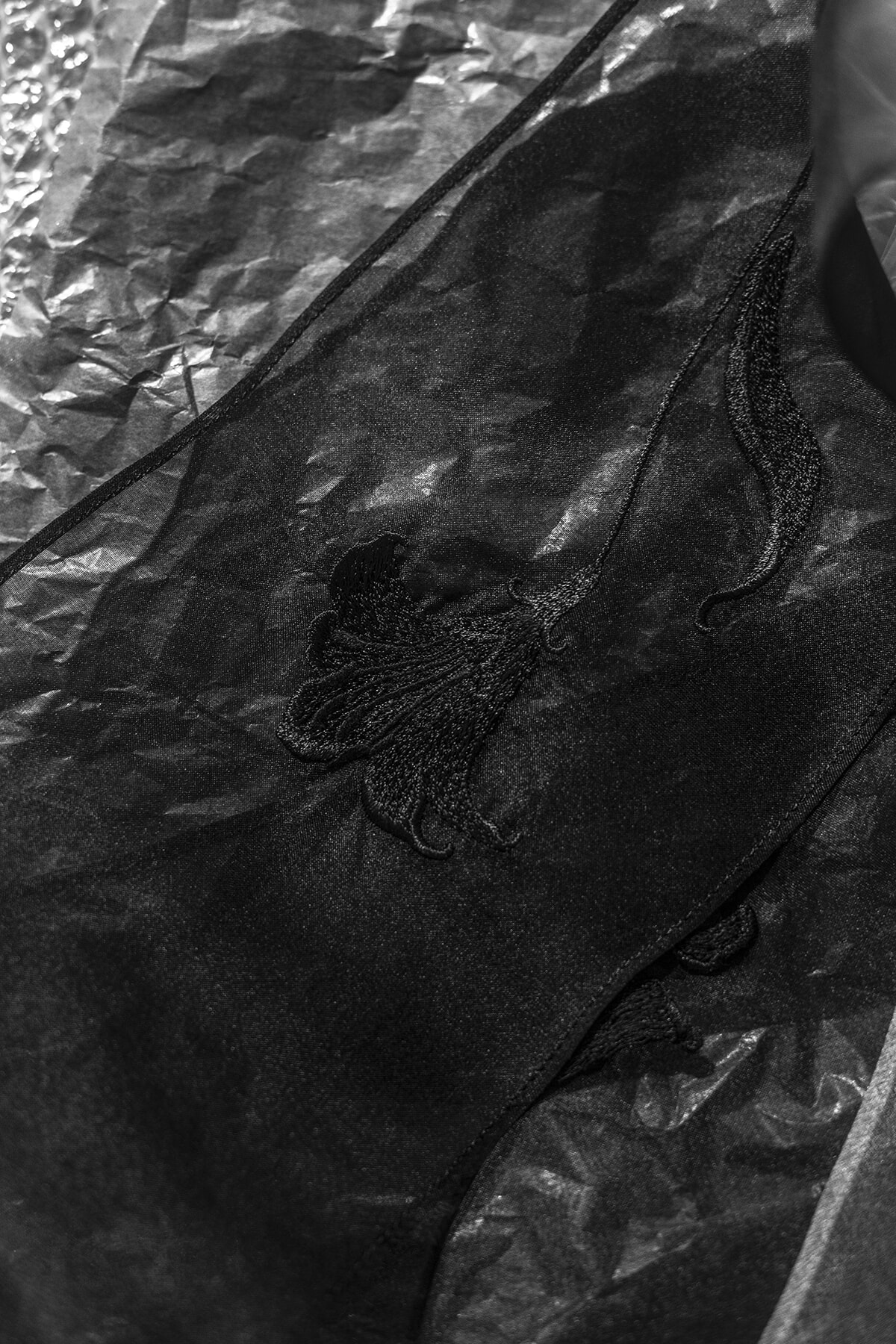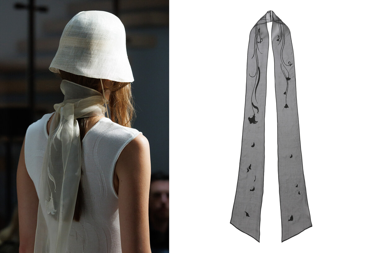 そして本展の開催を記念し、ランウェイコレクションにも登場した刺繍入りシルクスカーフをマメ クロゴウチ 青山で、雪解けの川を漂う氷のかたちをインスピレーション源に、職人がひとつずつ手作業で成形したガラス素材のジュエリーをマメ クロゴウチ オンラインストアでそれぞれ限定販売するので、こちらもお見逃しなく。