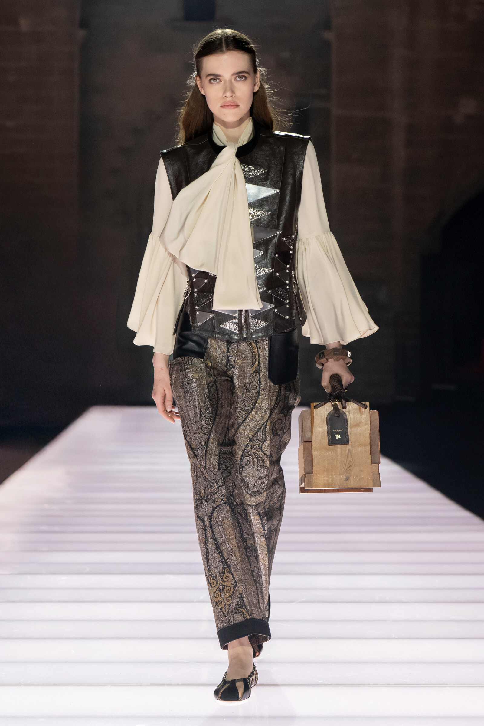 もちろんアヴィニョン教皇庁が建てられた時代や、建築様式、現代の用途などに着想を得ているが、ニコラの代名詞であるフューチャリスティックな要素なども融合させ、見たことのないクリエーションに。歴史的でもあり現代的、ファンタジーでもあり、リアルでもある。いつもながらさまざまなカテゴリーを軽やかに超越したコレクションだった。