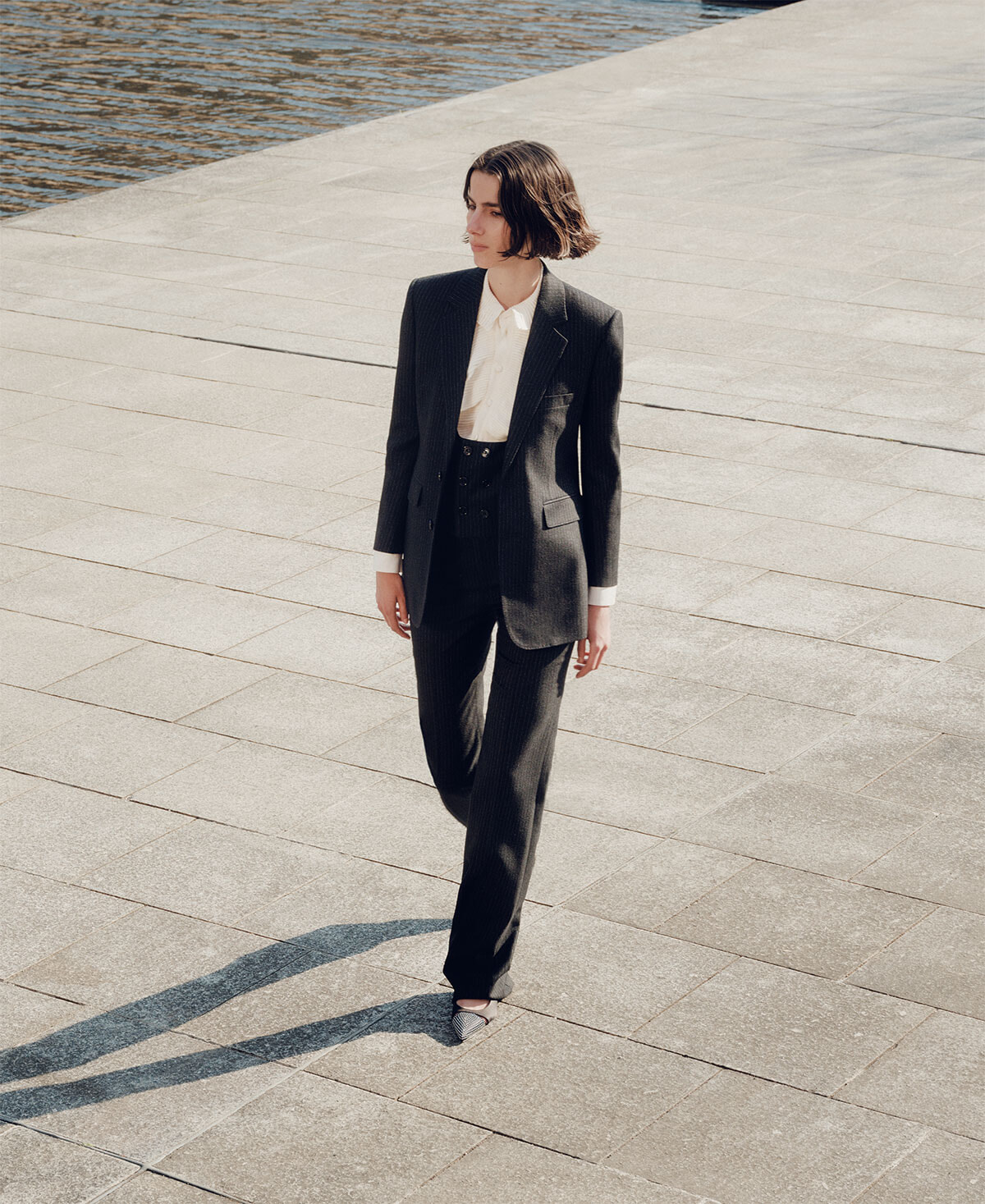 ジャケット¥445,500、ブラウス¥297,000、ベスト¥176,000、パンツ¥198,000、シューズ¥154,000(すべて予定価格)/以上セリーヌ バイ エディ・スリマン(セリーヌ ジャパン)