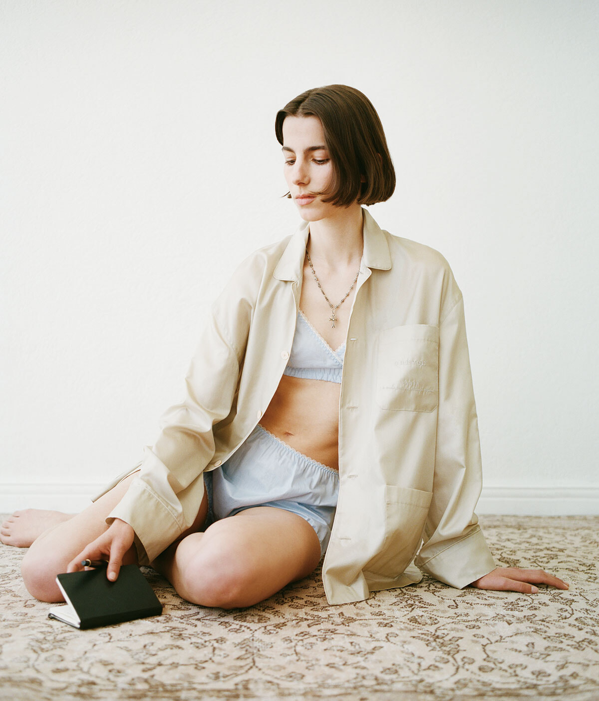 いつだって自分らしくありたいと纏うのは、乙女心をくすぐるランジェリーにシルクの艶やかなシャツ。ラギッドなジュエリーを添えて、一筋縄ではいかない魅力を漂わせて。