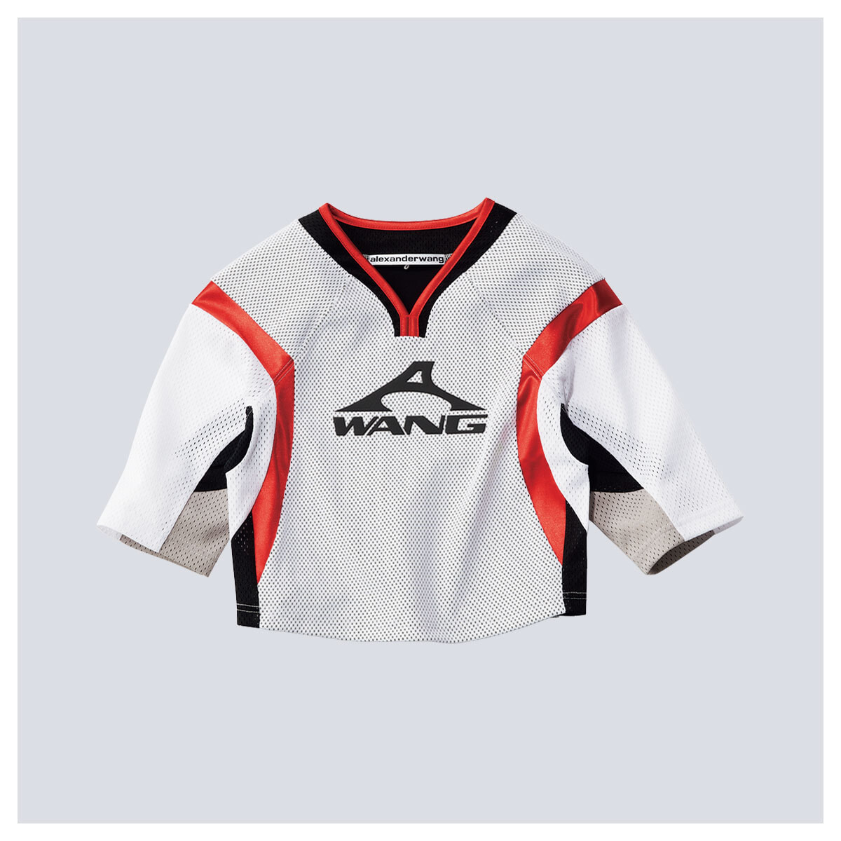 アイスホッケーのユニフォームに着想を得た、ジャージー風のメッシュトップ。