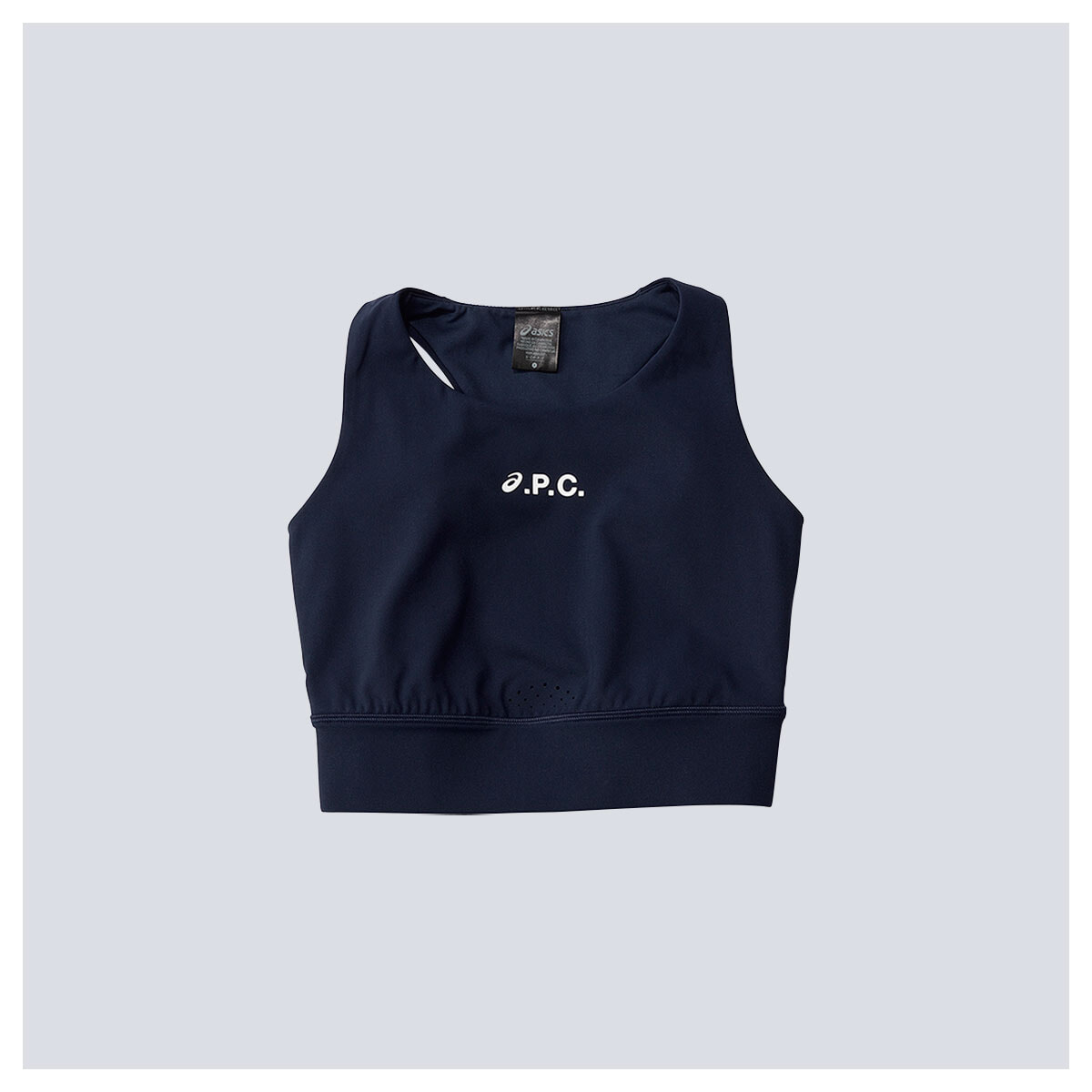 アー・ペー・セーとアシックスがコラボしたテニスコレクション。ネイビーブルーにホワイトのロゴが映える。