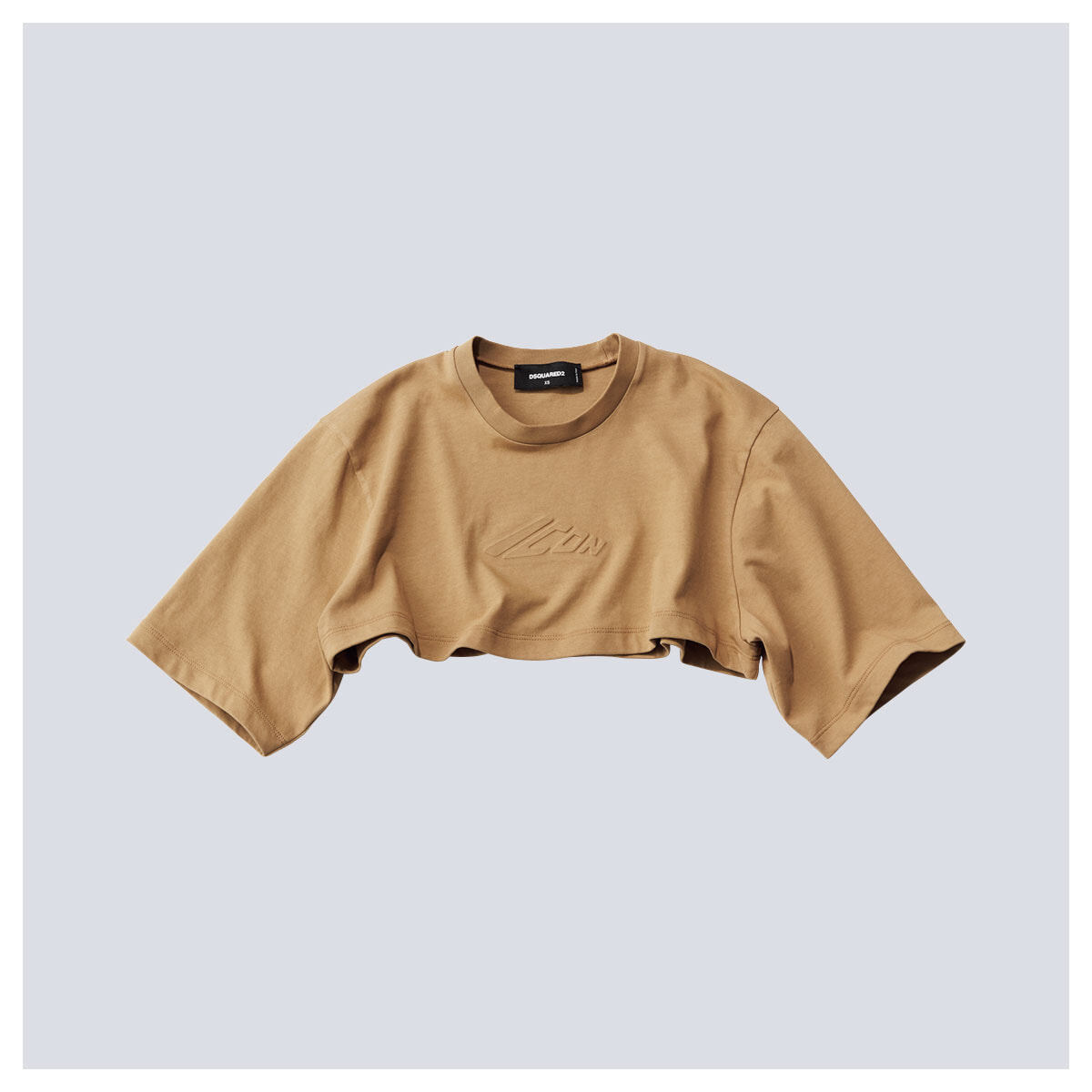 エンボスでICONのロゴをあしらった、ヘビーコットンジャージーで仕立てたクロップト丈Tシャツ。スイムウエアやタンクトップとのレイヤードを楽しんで。