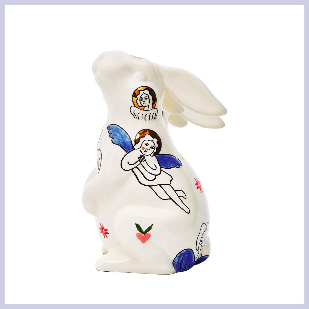 陶磁器で作られたうさぎモチーフにハンドペイントでデコレーション。部屋が華やぐモダンなフラワーベース。