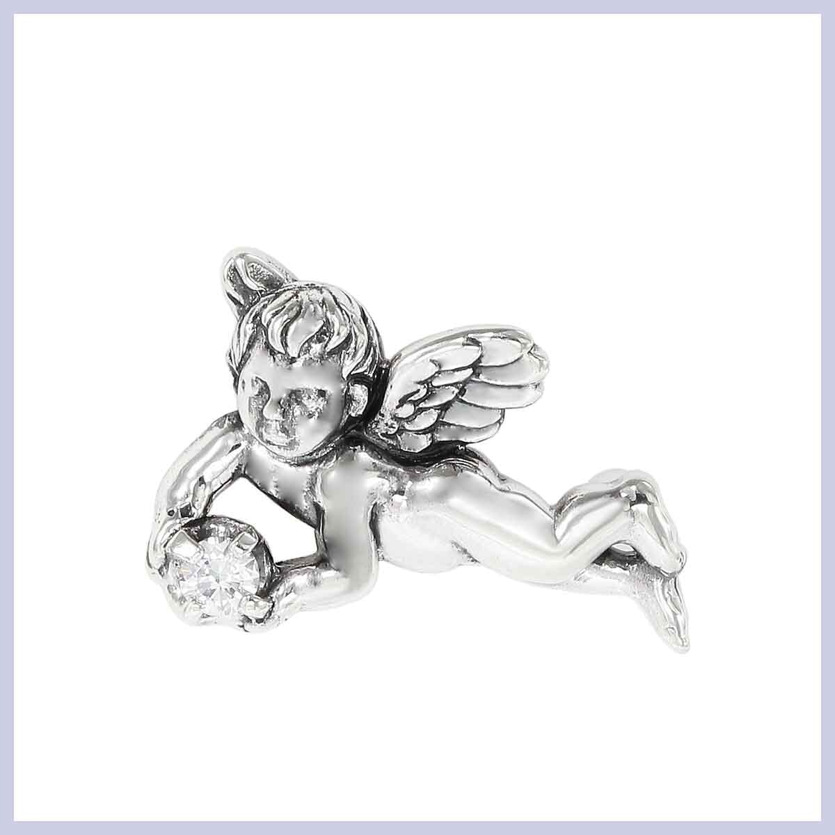 抱いたストーンがきらりと輝く天使モチーフのスタッズピアス。異なるデザインのピアスと組み合わせも楽しめるシングルタイプ。