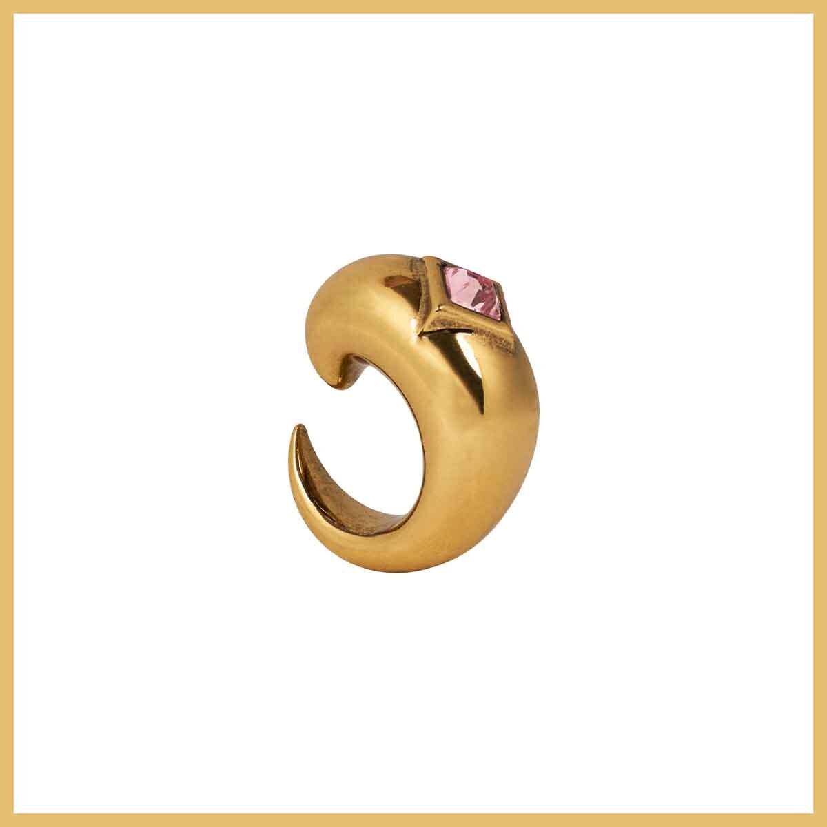 リュクスな輝きを放つクリスタルをあしらった、ぷっくりとしたペイズリーモチーフのイヤーカフで顔まわりにアクセントを。