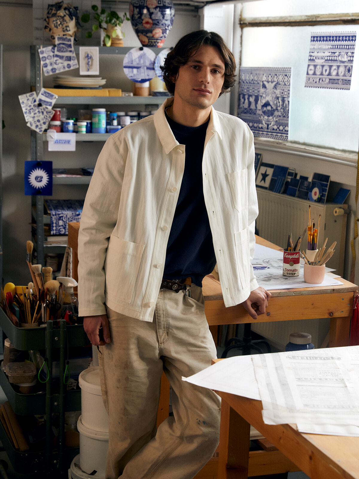 アトリエでカプセルコレクションを手がける、アーティストのコンスタンタン・リアン。