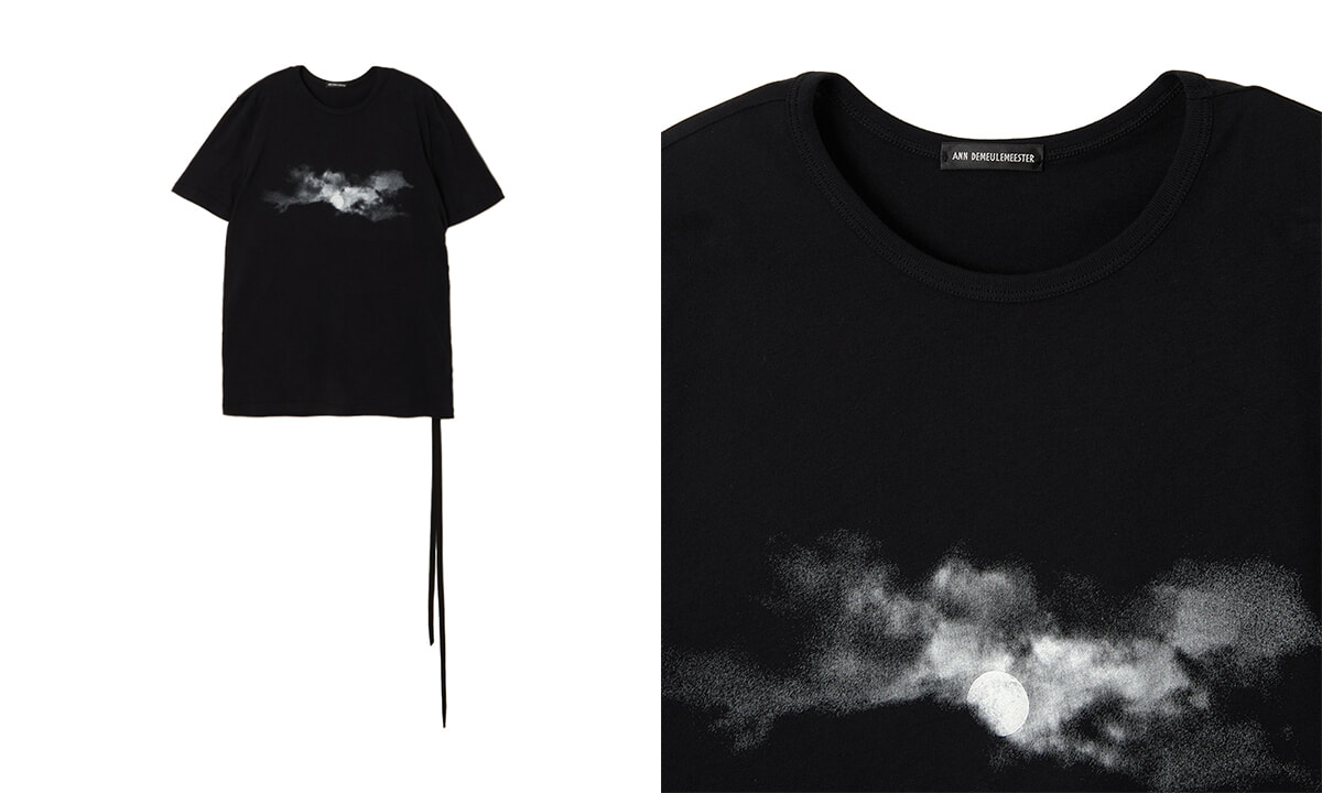 雲に隠れた月が除く、幻想的なイメージが描かれた「ムーン・プリント」。Tシャツ¥52,800(GINZA SIX限定)/アン ドゥムルメステール