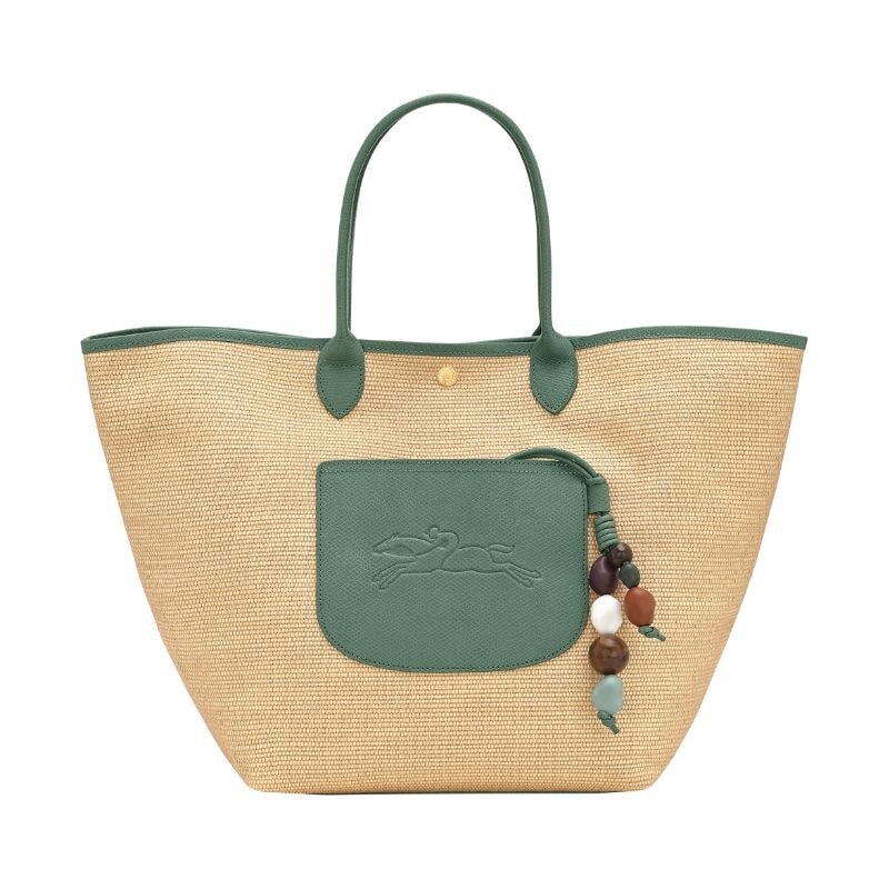 折り紙から着想を得たアイコニックな「ル プリアージュ®」の新作パニエ。カジュアルなストロー風素材のキャンバス地と上品なカウハイドレザーのコントラストが、軽やか&爽やかムード満点。陶器の彫刻を思わせるビーズのチャームがキャッチーなアクセントに。