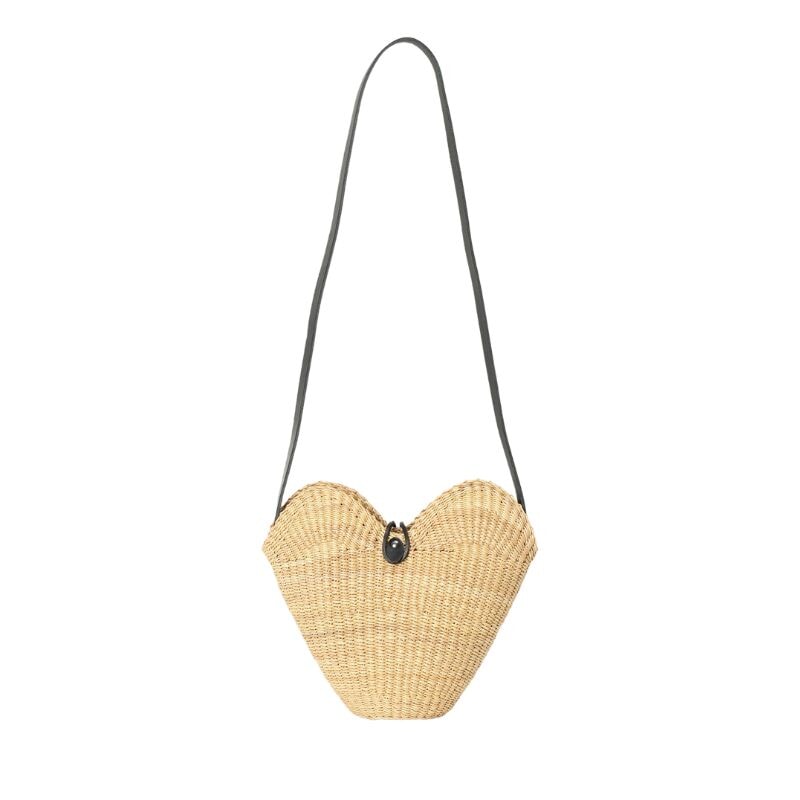 カゴ編みの伝統手法を使ってモダンに仕立てるバッグブランド、イネス ブレッサンドとアニエスべーが初コラボレーション! 小さめサイズのハート形と長めのショルダーのバランスが絶妙で、コーディネートのアクセントになること間違いなし。