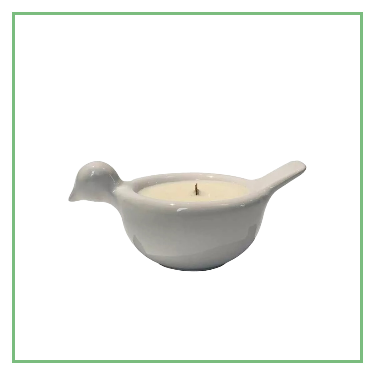 素朴な陶器の質感に癒されるバードモチーフのキャンドル。ふんわりと香るアロマとともにリラックスタイムを満喫して。