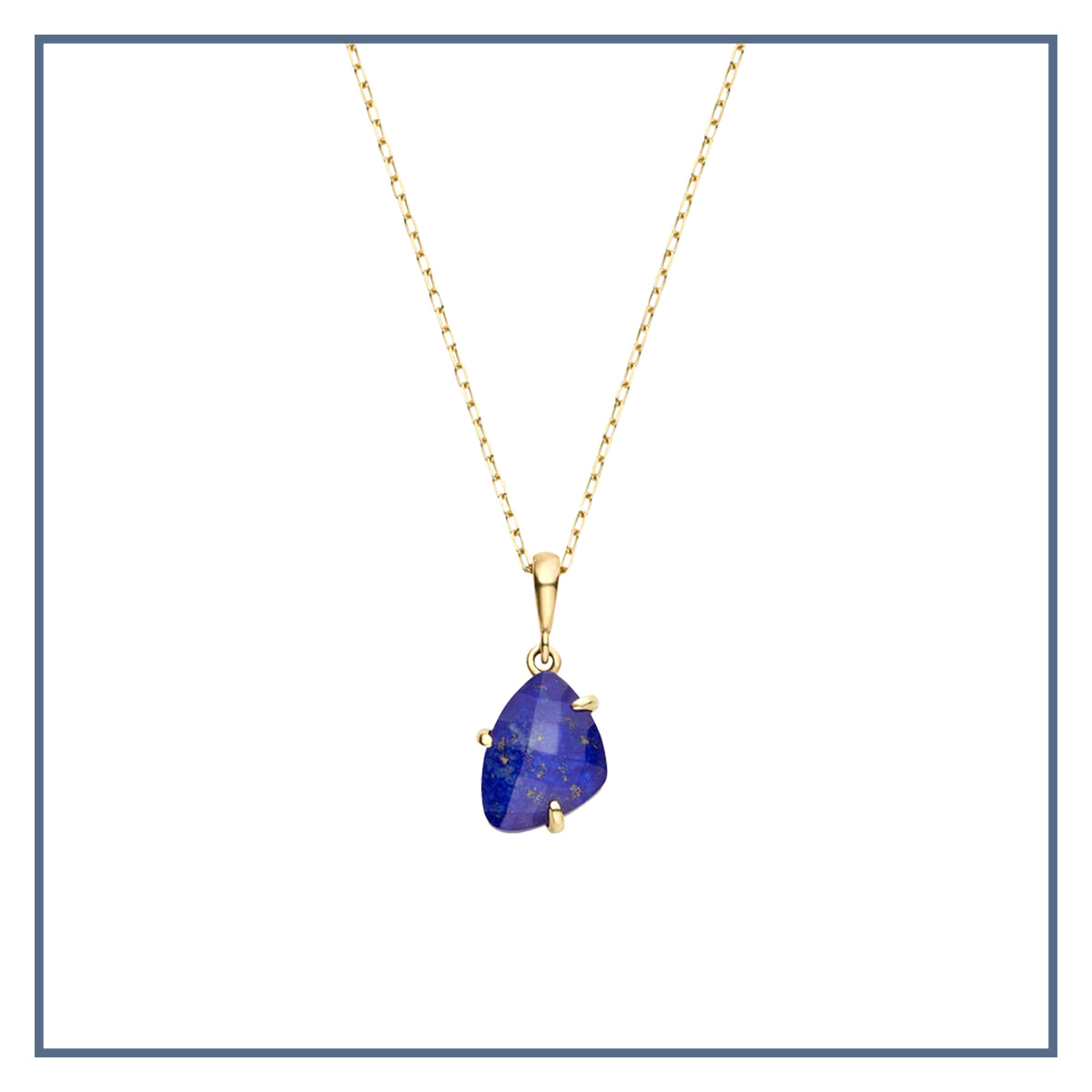 ラピスラズリの深いブルーが美しいネックレス。成長や繁栄をイメージするシェイプは、お守りがわりに身に着けて。