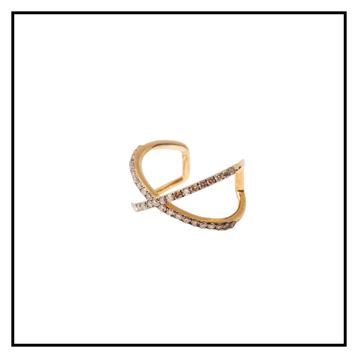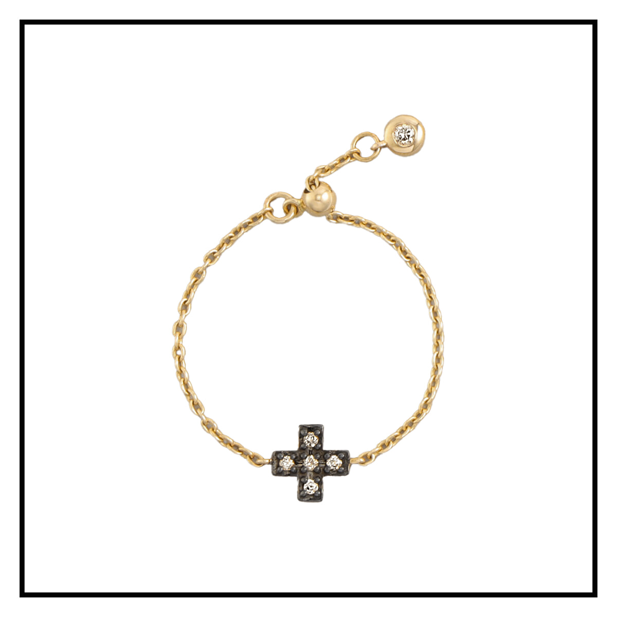 マイクロタトゥーから着想を得たチェーンリングで手元をスタイリッシュに演出。さりげなく主張するブラウンダイヤモンド付き。