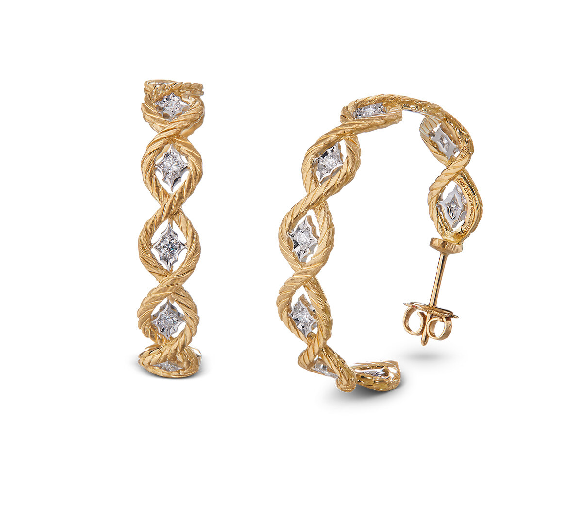 イタリア・ミラノの老舗ハイジュエラーのブチェラッティは、メゾンを象徴する4つのコレクション「ロンビ」「マクリ」「エトワレ」「チュール」より、伝統的な金細工の技術とクラフツマンシップを感じさせる新作フープイヤリングを発売。