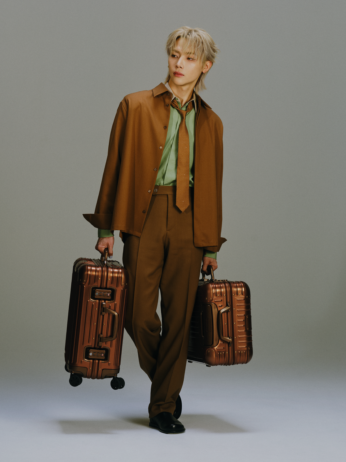 おしゃれも荷物も”自分らしくあること”がポリシーのNICHOLASにとって、「オリジナル」スーツケースの「ブロンズ」という新色はまさに理想的な出合いになった。「もともとブラウン系の色が好きなので、このブロンズは一瞬で気に入りました。服にも合わせやすいし、なによりもおしゃれ。旅先でどんなコーディネートに合わせようかと、いまから想像しています」。