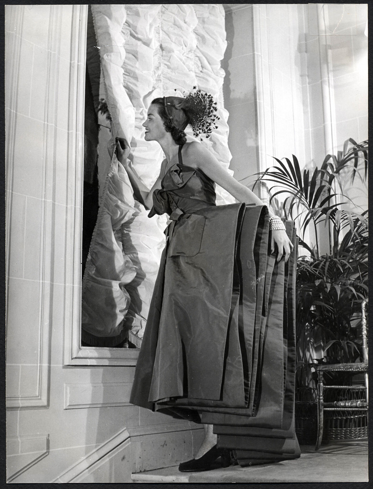 1948年秋冬 オートクチュール コレクションで発表された「デルフト」ドレス。©Association Willy Maywald ©ADAGP, Paris, 2025