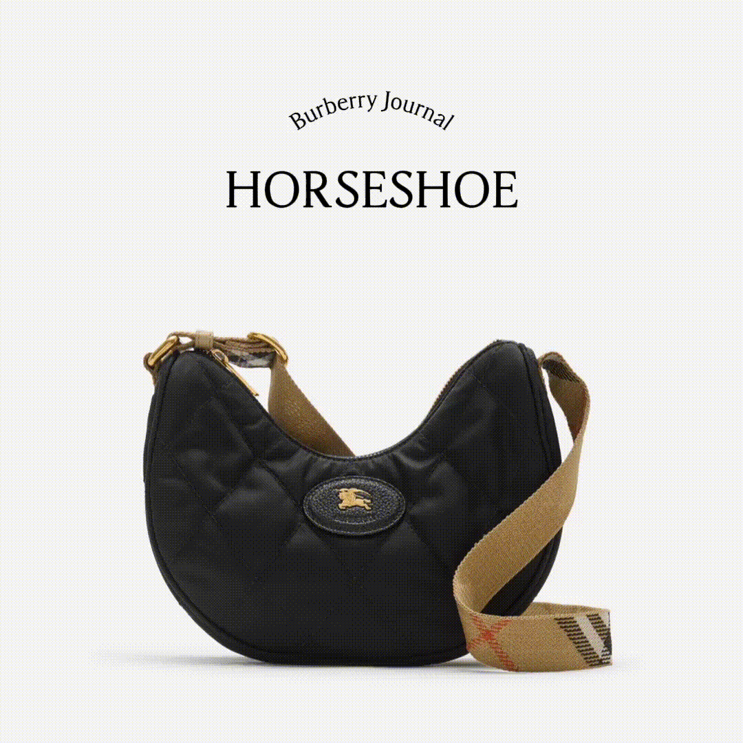 馬蹄(ホースシュー)をモチーフにした、ユニークなシェイプが目を惹く「ホースシュー」。レインウエアから着想を得たふっくらとしたキルティングは、思わずぎゅっと抱きしめたくなるような愛らしいフォルムが魅力。新作カラーのバーバリーチェックは、タウンユースにはもちろん、音楽フェスティバルのようなアクティブなシーンでも視線を集めそう。長さを調節できるウェビングストラップ付きで、ショルダーにもクロスボディにもアレンジ自在。