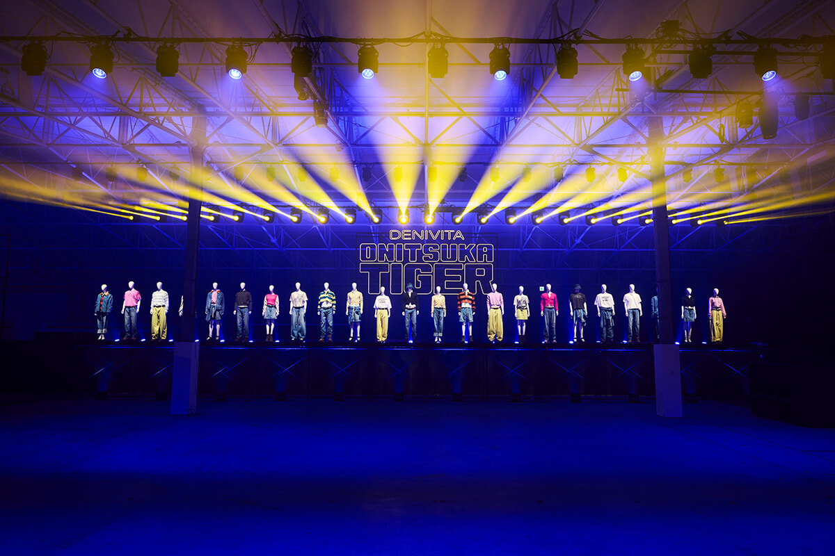 デニヴィータは、オニツカタイガーデニムとともに、明るく彩られた人生を歩んでほしいという願いを込め、「デニム」とイタリア語で人生を意味する「VITA(ヴィータ)」を紡ぎ合わせて名付けられた。日本製の上質なデニムを中心に、アイコニックなカラーとデザインが織りなすユニークなスタイルで日常を特別な瞬間にする。遊び心あふれた一夜限りのイベントは、そのスピリットが映し出されるものとなった。