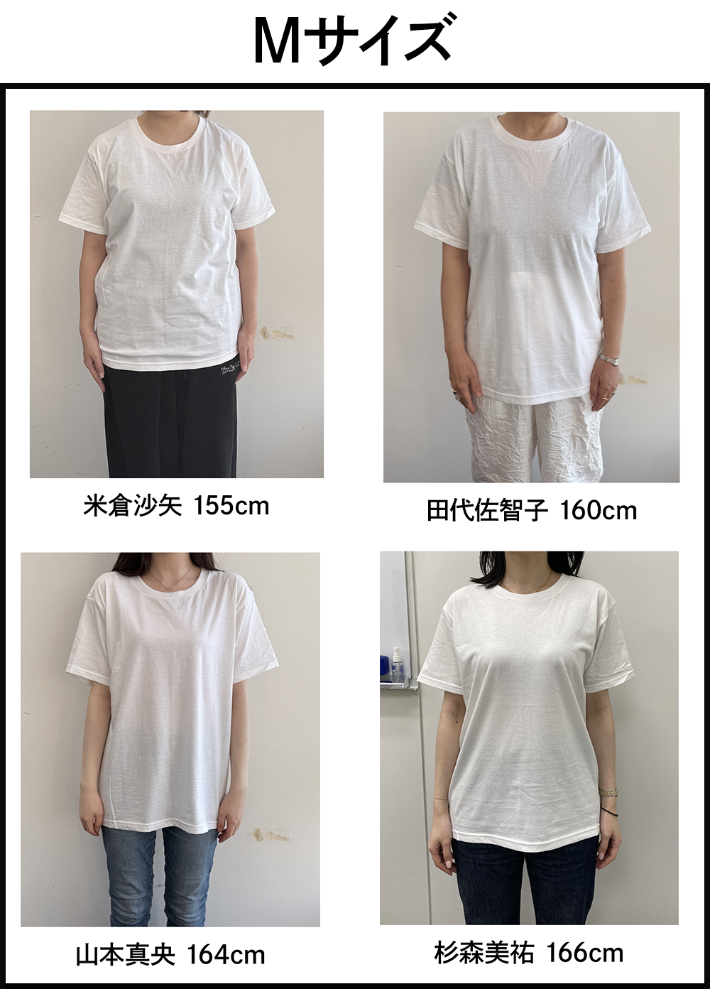 山本(左下):実は今回初めて知ったブランドで、着てみて独特の抜け感に驚きました。Mサイズでお尻まで隠れるため、細めのボトムスに合わせてメリハリを出したいです。風になびく軽い素材と広めに開いた首周りが暑い日にぴったりで、着心地も抜群でした。