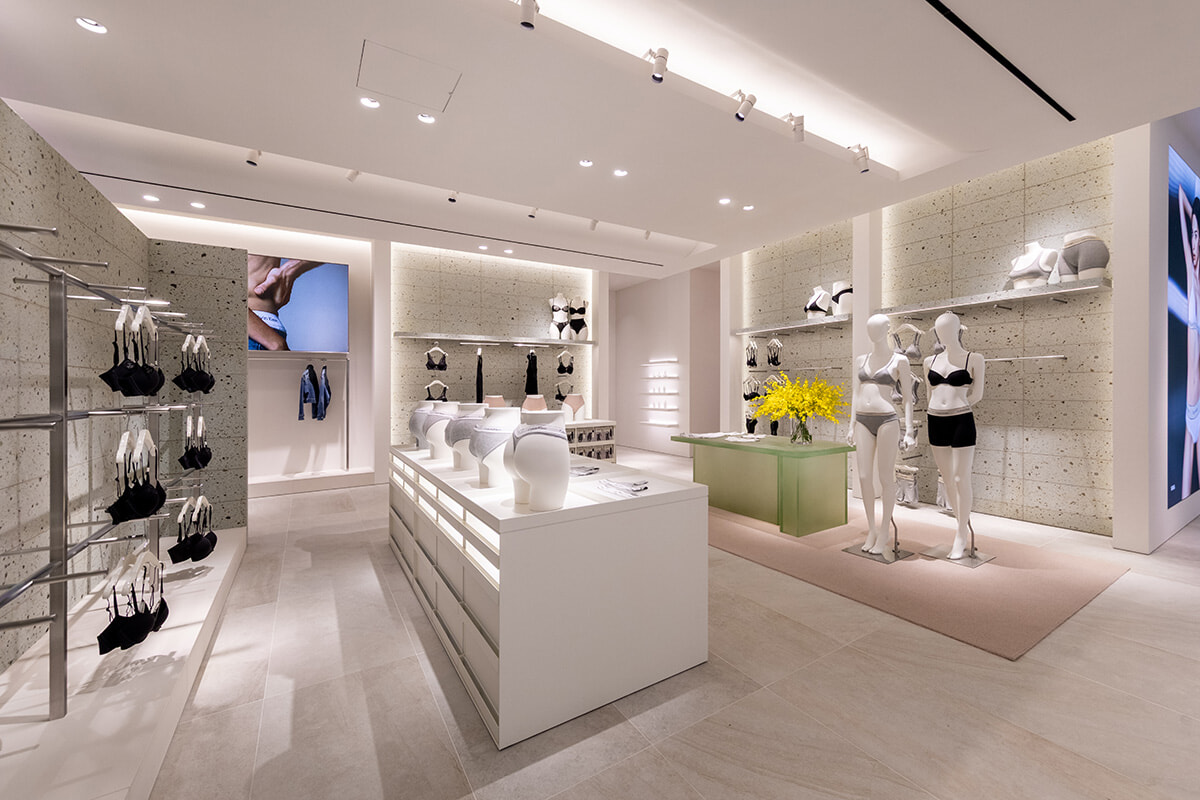 1階と2階はウィメンズとメンズのフルラインナップを展開し、アパレル、アンダーウエア、ファッション小物などカルバン・クラインのライフスタイルを網羅。なかでもデニムには力を入れているほか、それぞれのフロアにブランドを象徴するアンダーウエアセクションを設けて、来店者がアパレル、デニム、アクセサリーなど最新のアイテムを手に取れるようになっている。3階にはイベントや展示、ギャラリーとして活用できる柔軟なスペースと、特別なローンチや招待制イベントのためのVIP専用エリアを設置する。