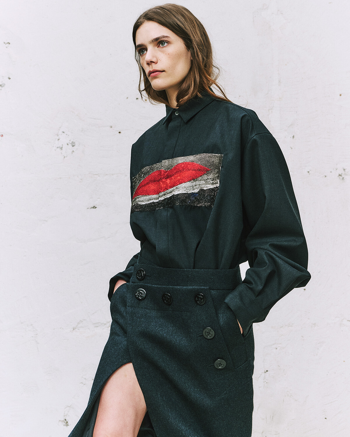 本コレクションのコンセプトは「One tender moment 優しい瞬間」。洋服自体がスカーフのようなつくりを持ち、着る人のワンジェスチャーによって柔らかさのある新たなフォルムに変化するデザインが特徴だ。「巻く」という仕草をデザインに落とし込み、着る人が包まれるような気持ちになってほしいという想いが込められている。
