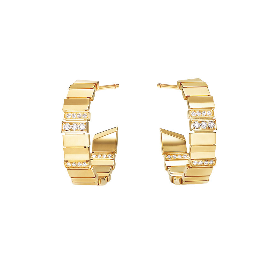 アイコニックな「キャトル」のモチーフをイエローゴールドのフープに通し、より一層モダンに。