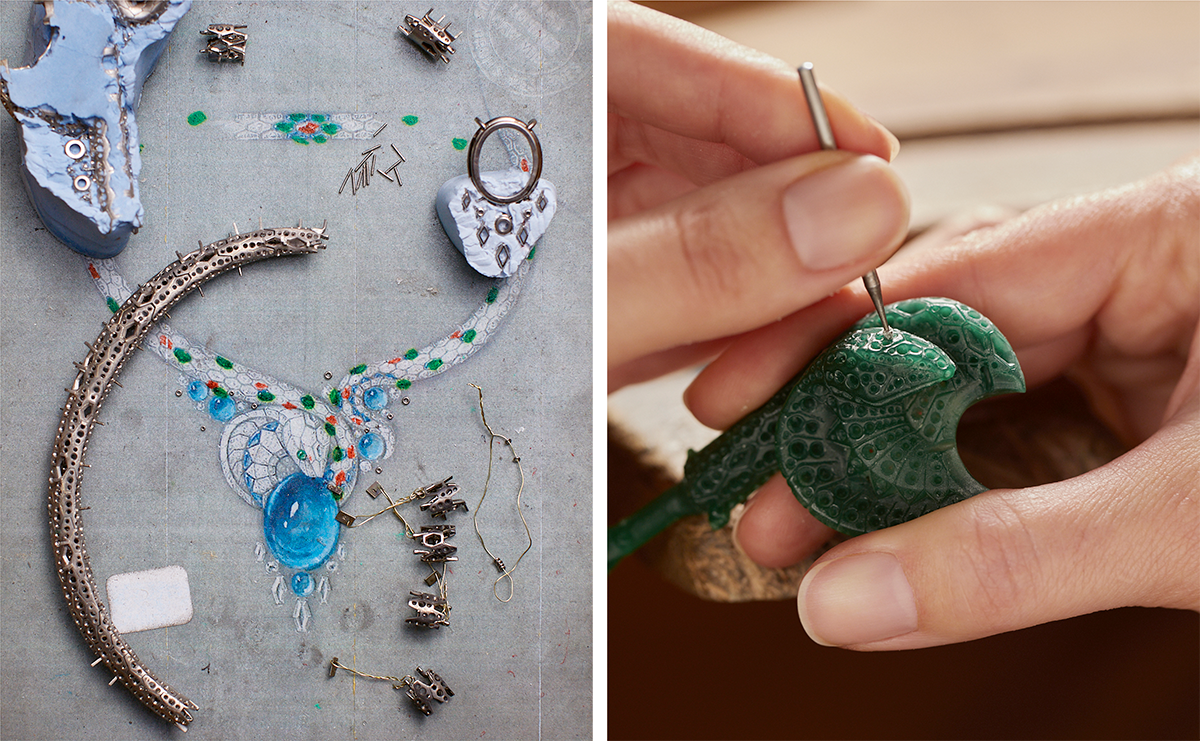ヘビがモチーフのネックレスNajaatra。難しいデザインの実現をアトリエの職人の技が支える。
